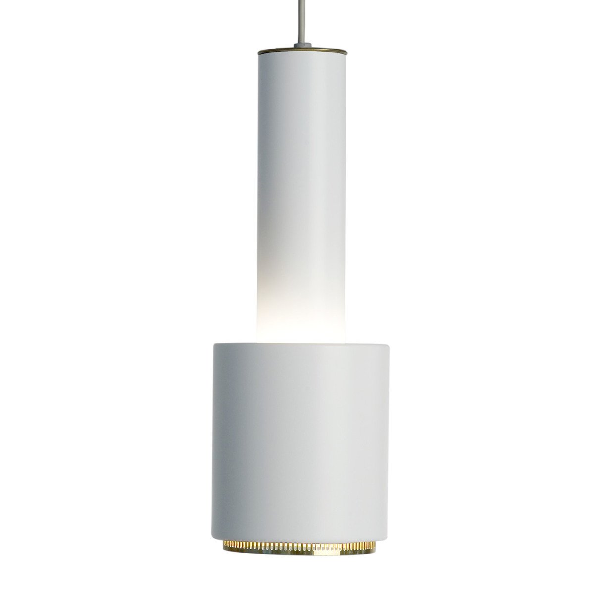 Alvar Aalto designed the A110 ceiling lamp, playfully called Hand Grenade, in 1952. The lamp’s beauty is based on its shape which is extremely simple. The lamp is formed by two cylinders, one inside the other, and the light is reflected upwards where the two cylinders join together. As a nice detail, the lamp has a perforated brass ring through which the light is diffused, reflecting downwards. As many other lamps designed by Aalto, also the Hand Grenade can be suspended in a group.