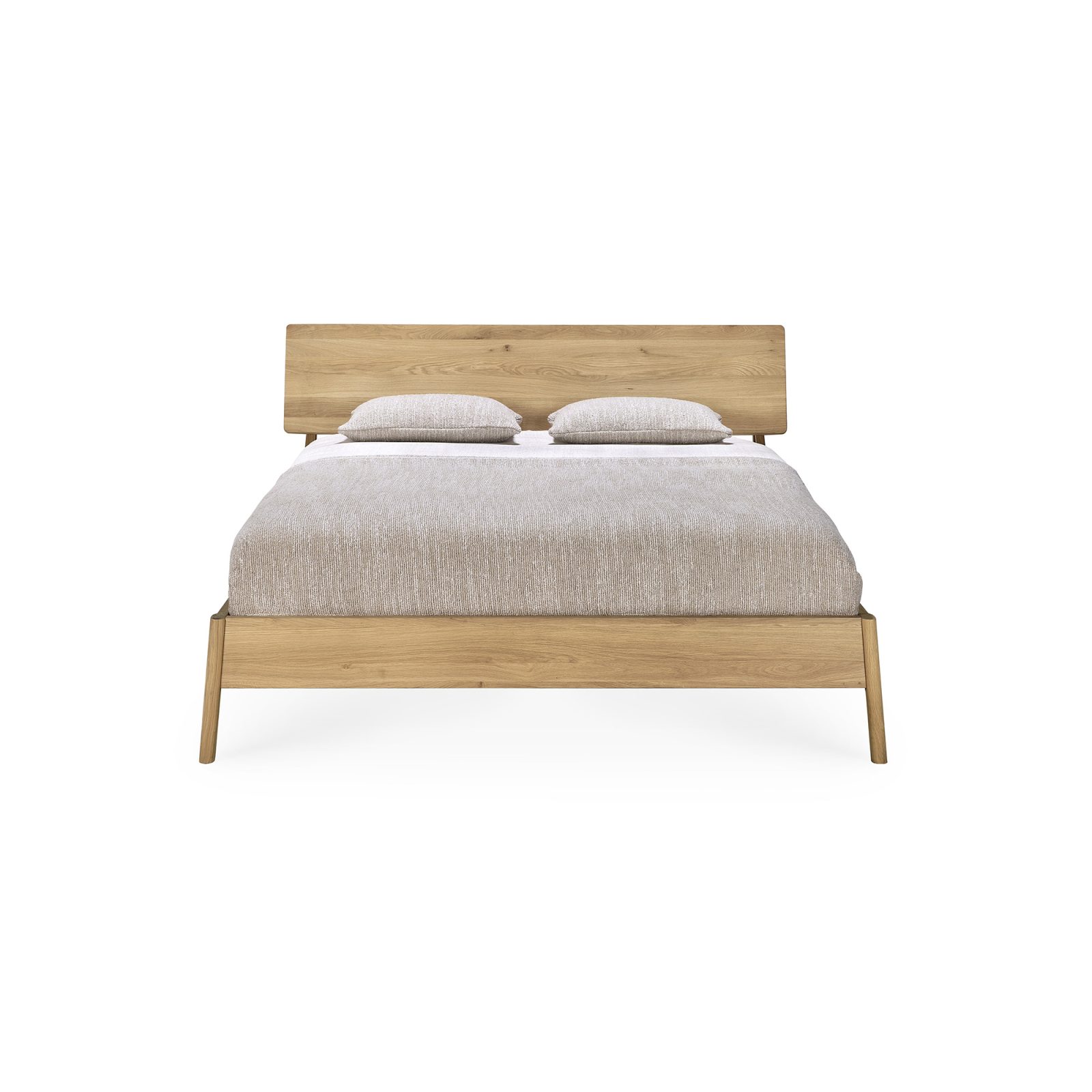 Ethnicraft’s Air Bed embodies the essence of tranquility and modern design. Conceived to infuse softness and a sense of airiness into the bedroom, this bed contrasts the typical robustness of solid furniture with its delicate roundness and light appearance. Crafted from solid oak, the Air Bed stands as a sturdy yet seemingly weightless structure.