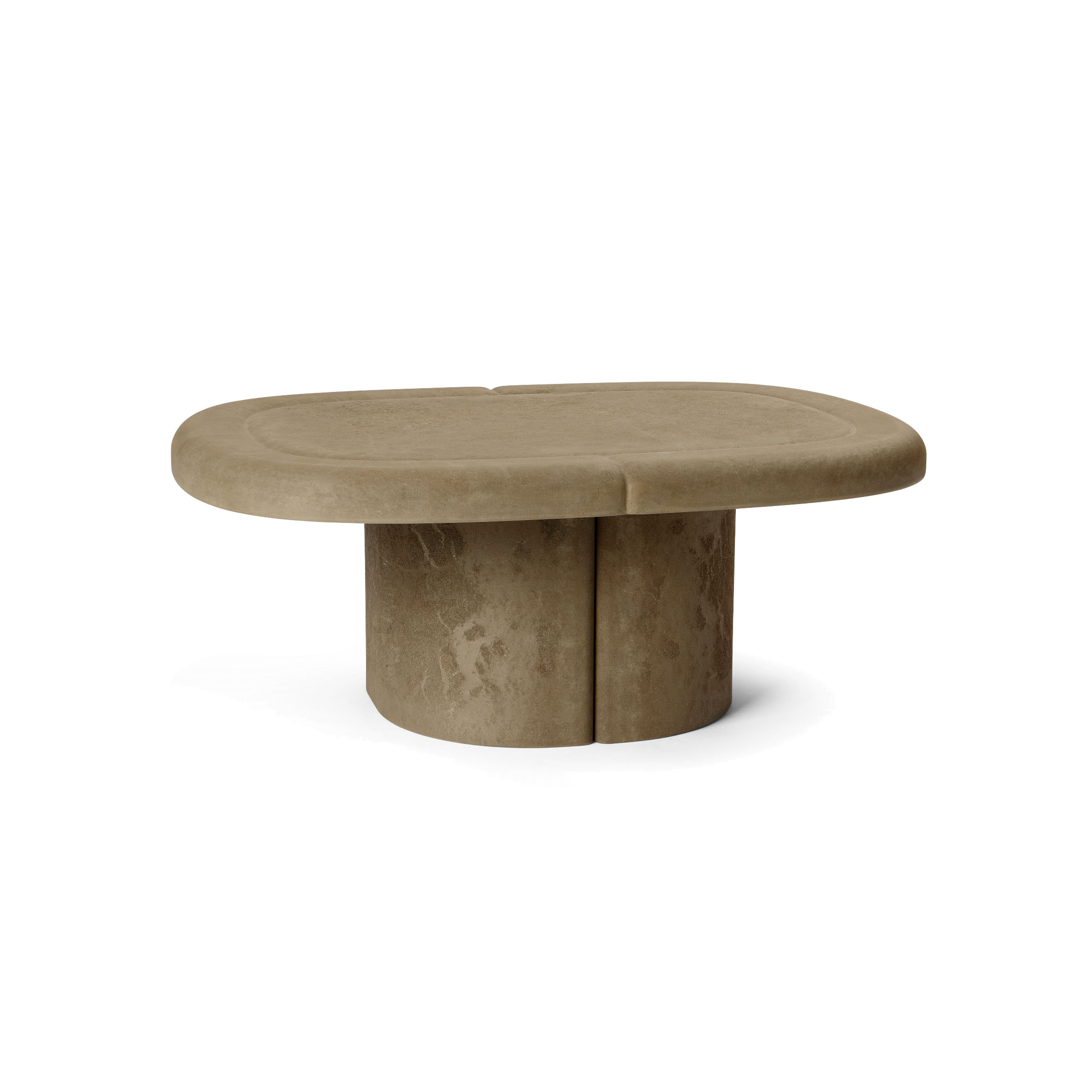 Patricia Urquiola stretches the Alder concept into a smooth-oval coffee table, letting Mater’s Matek® composite show off its stone-like calm. The biodegradable mix of recycled plant fiber and natural binders forms a broad, gently chamfered top that flows into four tapered legs—no seams, no hardware, just one continuous sweep of material. Flecks inside the matte surface hint at the agricultural offcuts that now hold your books and espresso cups. In Biodegradable Sand the piece reads like pale limestone; in Earth Grey it settles into the room with a quiet graphite tone. The low, generous footprint invites casual sprawl—magazines at one end, laptop at the other—while the circular-economy recipe means the table can return to the soil when its long indoor life is done. Sustainable heart, sculptural ease, ready to ground a lounge without weighing it down.