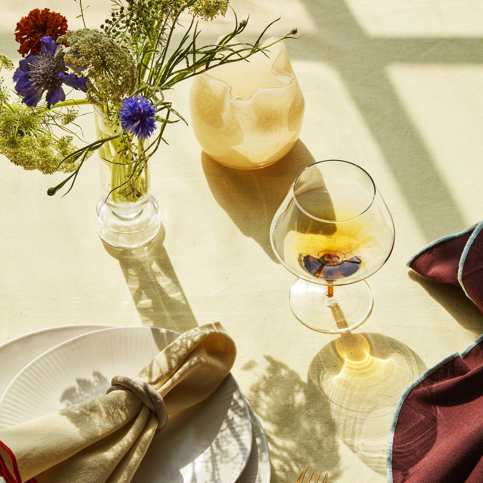 The Amber Cognac Glass boasts a wide, rounded bowl designed to enhance the aromas and flavors of your favorite cognacs. The subtle warm gradient not only adds visual appeal but also embodies the minimalist beauty of Nordic design, making it a standout piece for any occasion. Perfect for savoring fine cognacs, this glass is ideal for both special gatherings and quiet evenings at home. The Amber Cognac Glass by Broste Copenhagen seamlessly combines functionality and aesthetic charm, elevating your drinking experience with every sip. Enjoy the elegance and luxury of this beautifully crafted glass, a true testament to exceptional design and craftsmanship.