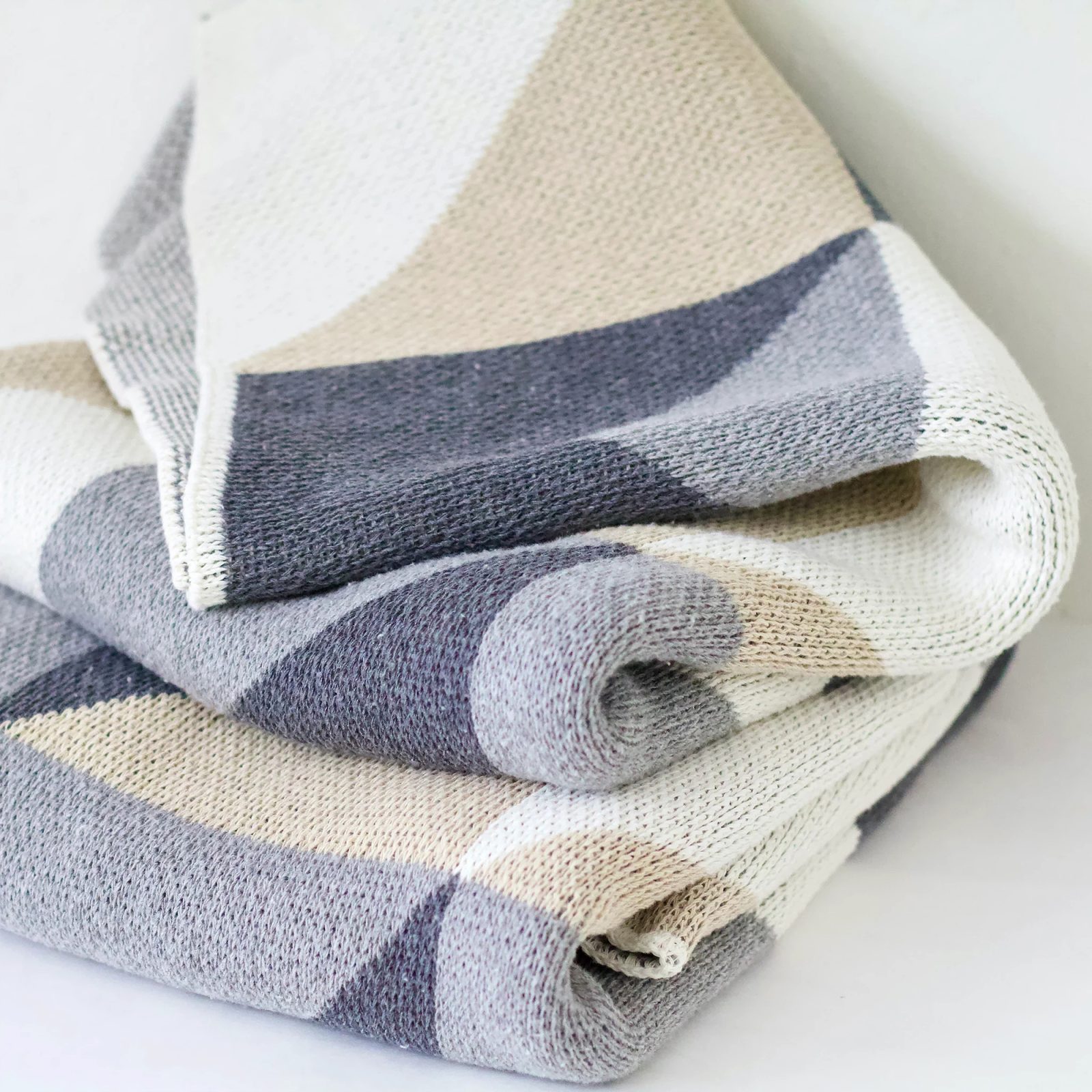 The Angles Throw in Neutral adds a modern geometric flair to your living space. Featuring a sophisticated palette of pewter, dove grey, linen beige, and ivory, this throw complements any decor style with subtle elegance. Its eco-friendly composition of 75% upcycled cotton and 20% RPET offers both comfort and sustainability. Perfect for cozying up on a sofa or layering on your bed, this throw is versatile, stylish, and machine washable for easy care. Designed and made in the USA, it’s a blend of quality craftsmanship and contemporary design.