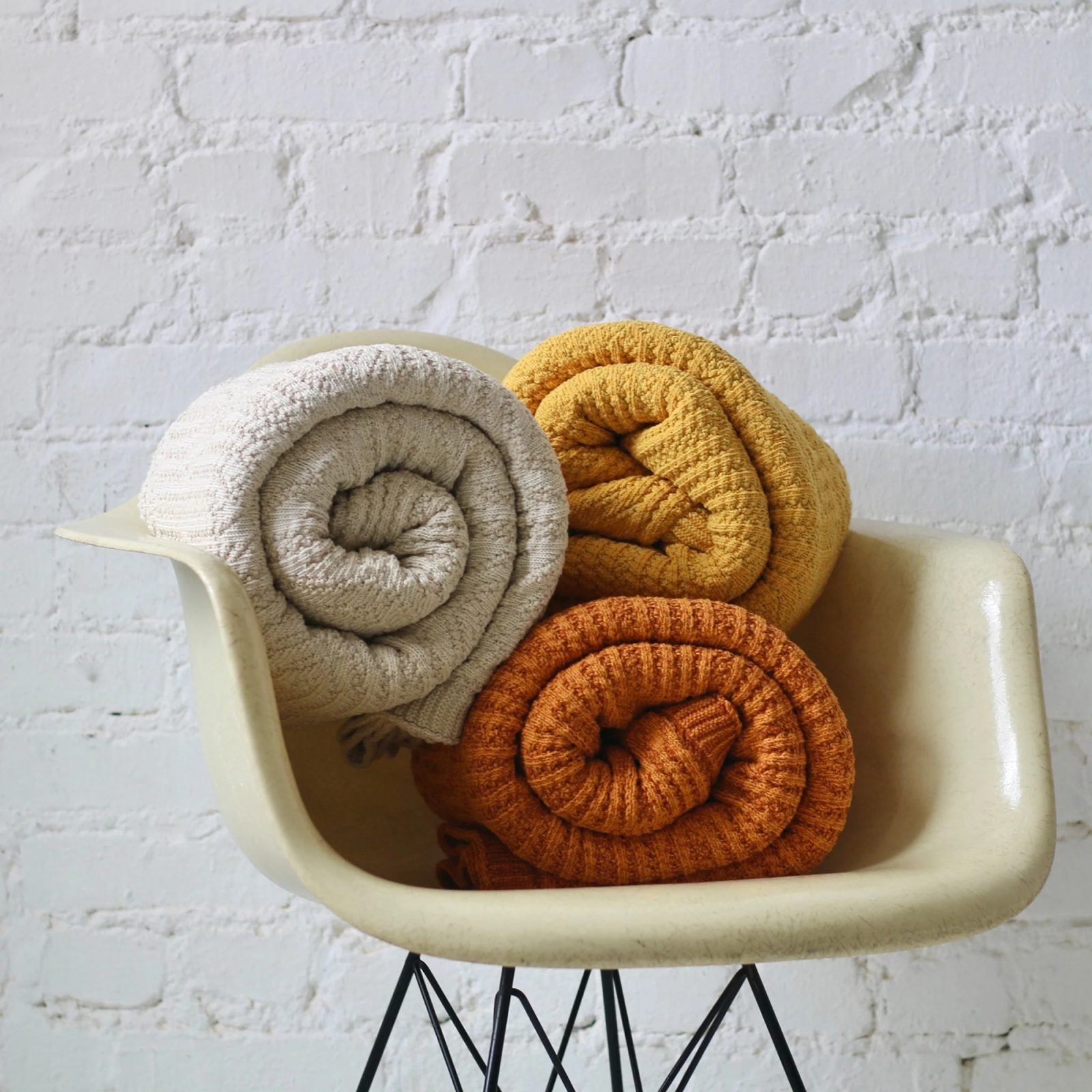 The Arch Texture Throw in Orange infuses your space with warmth and vibrancy. With its bold shades of orange and textured knit inspired by architectural arches, this throw adds a striking statement to any decor. Made from eco-friendly materials, including 75% upcycled cotton and 20% RPET, it offers both sustainability and softness. Whether draped over a chair, used as a cozy blanket on your bed, or taken along for outdoor adventures, this throw is as functional as it is stylish. Designed and made in the USA, it’s machine washable for easy care.