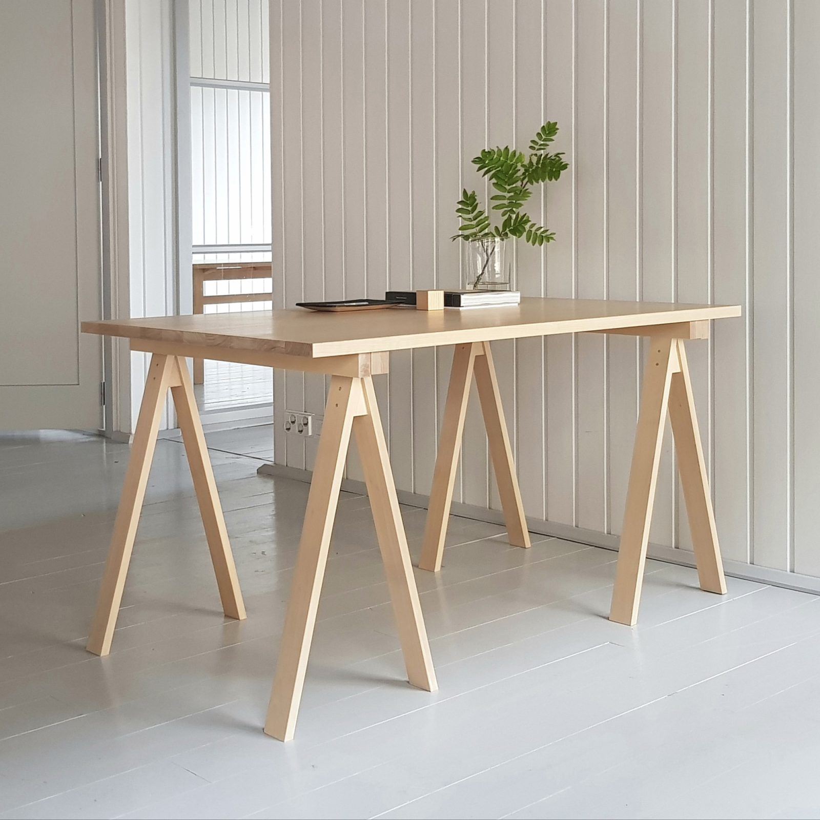 Creative people think differently. Nikari’s Arkitecture PPJ Trestle Leg is designed with them in mind. Versatile and DIY-friendly, these wood trestle legs allow the user to create a custom table by adding a table top, wooden planks, glass, or any other flat panel. Designed by Nikari founder Kari Virtanen, the trestle legs are simple, practical, and durable. They can carry heavy loads but they also occupy minimal space when not in use, making them perfect for compact apartments, home offices, or small studios. The trestle legs are crafted from birch wood and they come with a natural wood oil mix finish. Use the Arkitecture PPJ Trestle Leg with your own table top or pair this product with the matching Arkitecture table tops, which are available separately.