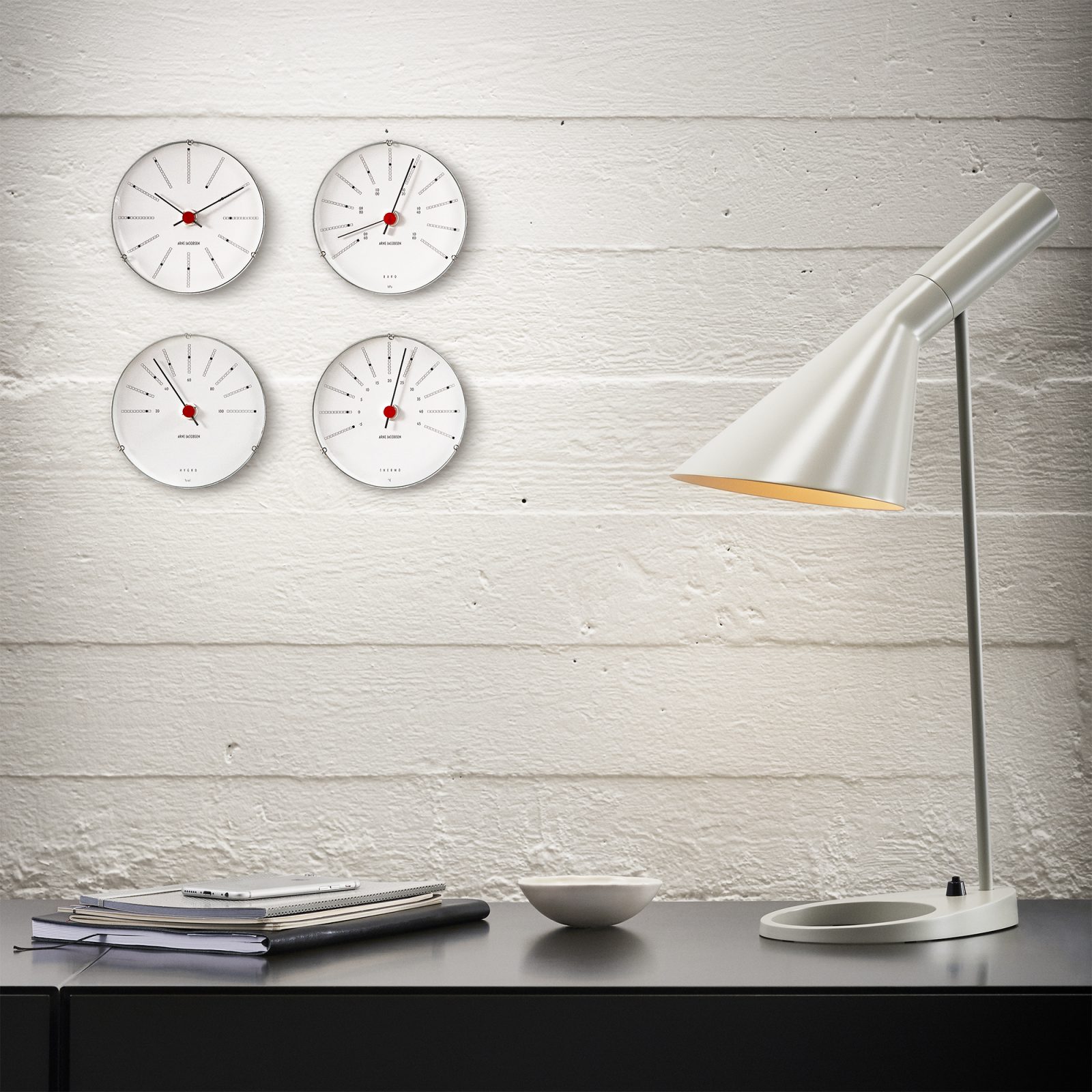 The Arne Jacobsen Bankers Barometer is a perfect blend of functional precision and iconic Danish design. With its minimalist face and sleek aluminum case, this barometer takes inspiration from Jacobsen’s timeless Bankers Wall Clock, originally designed for Denmark’s central bank in 1971. It’s a striking addition to any wall, combining simplicity with elegance.