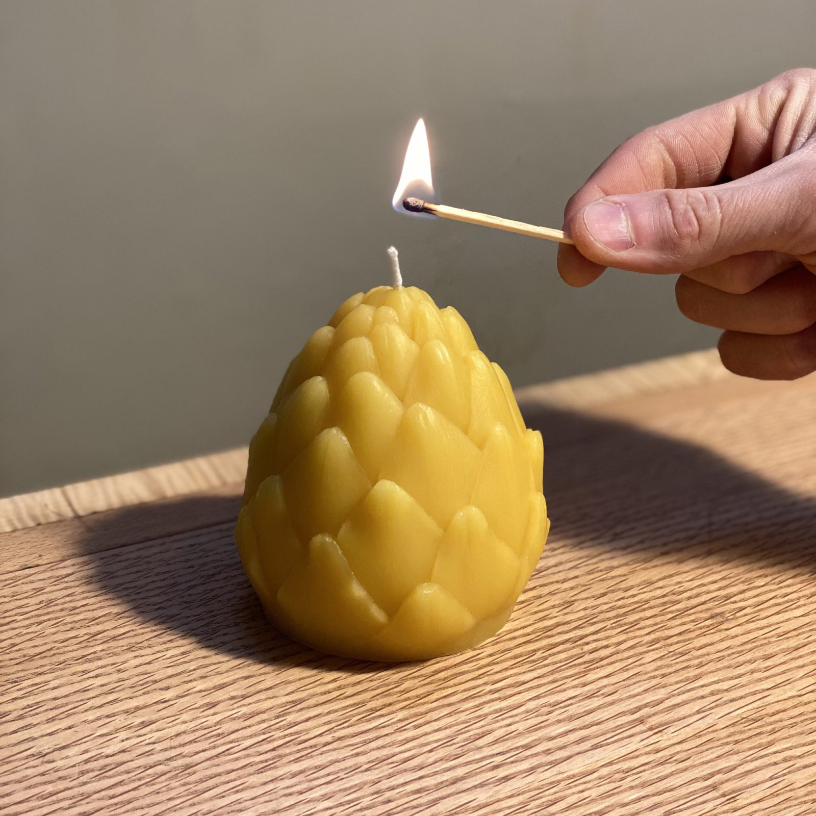 The Artichoke Beeswax Candle by Artifaqt transforms a humble vegetable into an extraordinary piece of functional art. Molded from a real artichoke sourced from Kimberton Whole Foods in Phoenixville, PA, this candle captures its intricate shape and texture in remarkable detail. Crafted from pure beeswax sourced from Chester County hives, it offers a clean, bright, and long-lasting burn with a natural honey-like aroma.