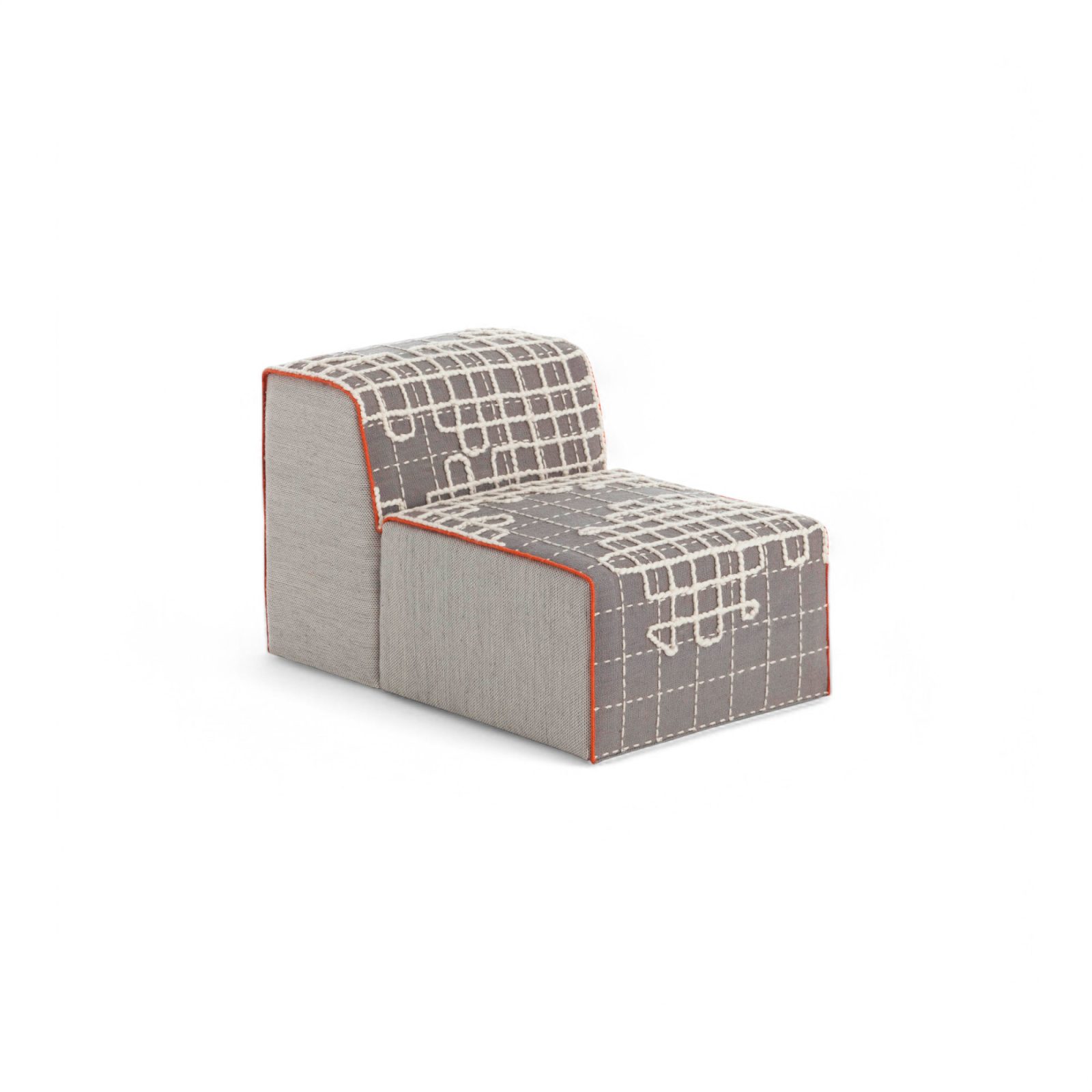 Patricia Urquiola’s Bandas Style A Chair is versatility done right. Designed for GAN, this chair can stand beautifully on its own or effortlessly combine with poufs and chaises to create modular seating arrangements. Crafted by hand, its fabric showcases intricate embroidered details in contrasting white wool threads that add texture and personality. Available in soft pink or understated grey, both options are accented with a vivid orange trim, giving the chair a subtle yet stylish pop of color. Perfect for those who love to change things up, the Bandas Style A Chair adapts to your mood—and your space.