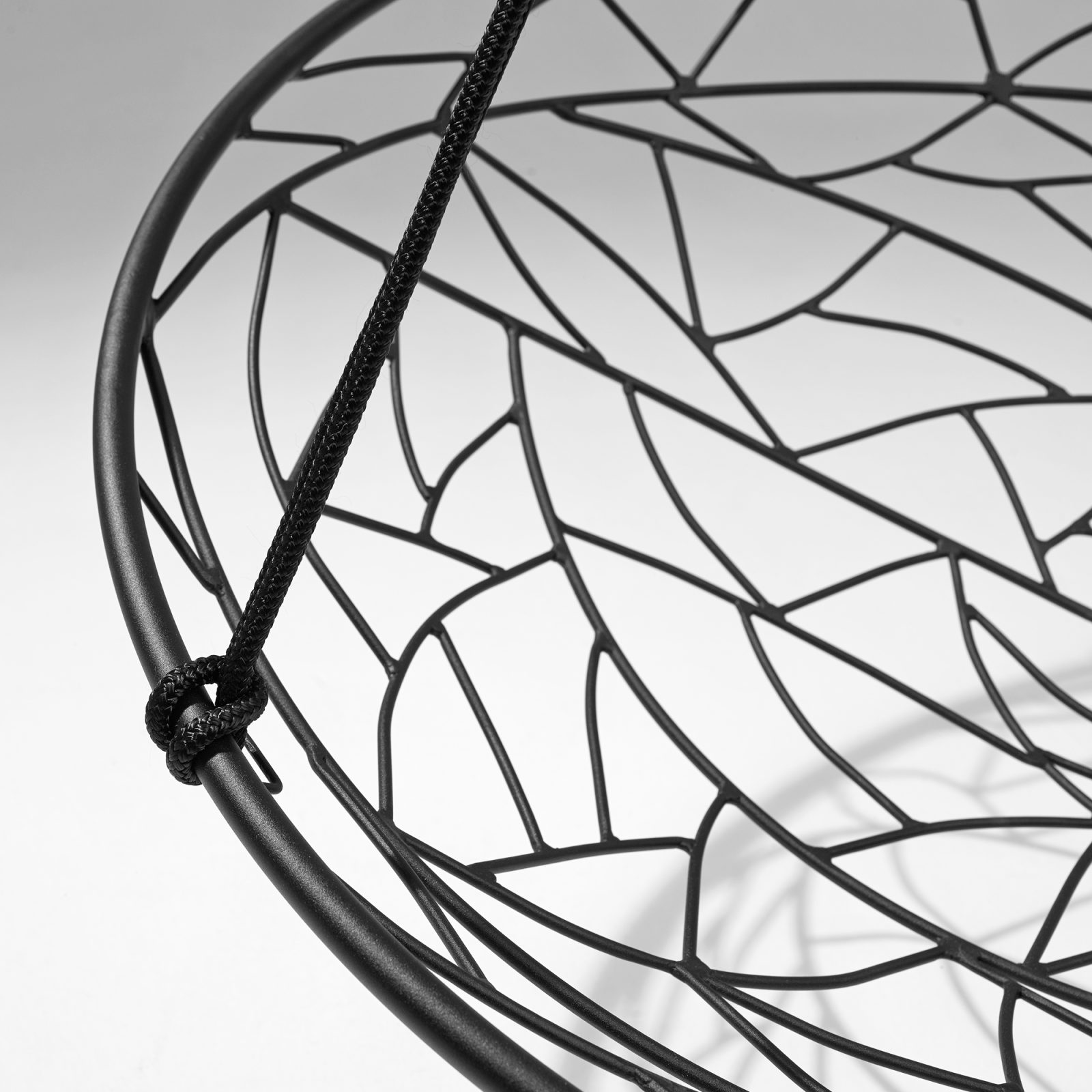 Unwind after a long day; read a book; or simply gaze at the sky. You can do all of these things in complete comfort with the Basket hanging swing chair. Designed by Studio Stirling, this lounge hanging chair has a creative design that celebrates patterns found in nature. While the circular form references organic round shapes, the intersecting lines remind of leaves, dragonfly wings, and cracked soil patterns. The chair has a cocoon-like form that hugs the user and enhances seating comfort. Every Basket swing chair is expertly made by hand by skilled artisans in South Africa. Made from mild steel, the chair features a rust resistance treatment and a powder-coated finish – both of which prolong its durability and make it suitable for indoor or outdoor use. Install the chair in a living room or bedroom or hang it on a deck or patio to create your ideal lounge space.