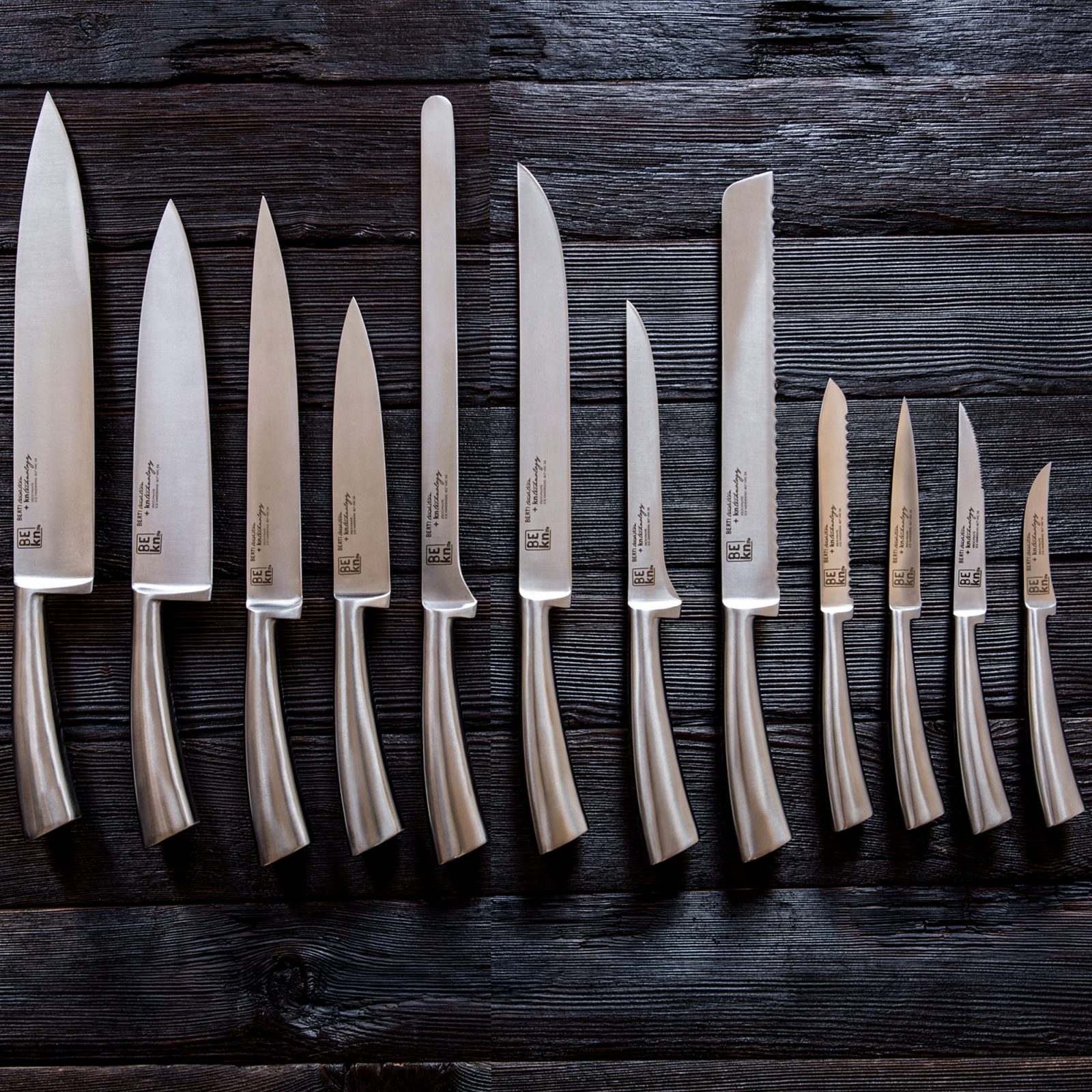 The BE–Knife peeling knife comes from KNIndustrie’s work with Coltelleria Berti, a family workshop in Italy. Made from one piece of stainless steel with a soft frosted finish, it feels smooth in hand. The squared bolster adds a bit of grip, almost like a thumb rest.