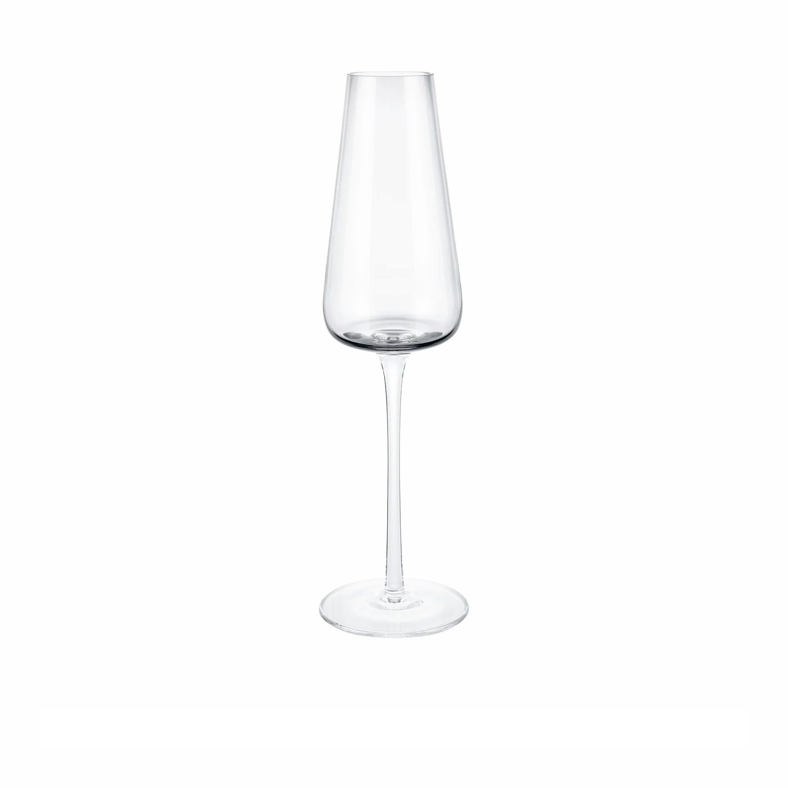 Tall, light, and precise, the BELO champagne flutes are mouth-blown in clear glass and finished with a cut-and-polished rim so every sip feels crisp. The tapered bowl gathers aroma and keeps a fine bead of bubbles in view—exactly what you want when the cork goes. At 9.6″ H x 2.4″ Diam or 24.5 cm H x 6.0 cm Diam, each flute holds 6.8 fl oz or 200 ml, so a standard pour looks elegant rather than overfilled.