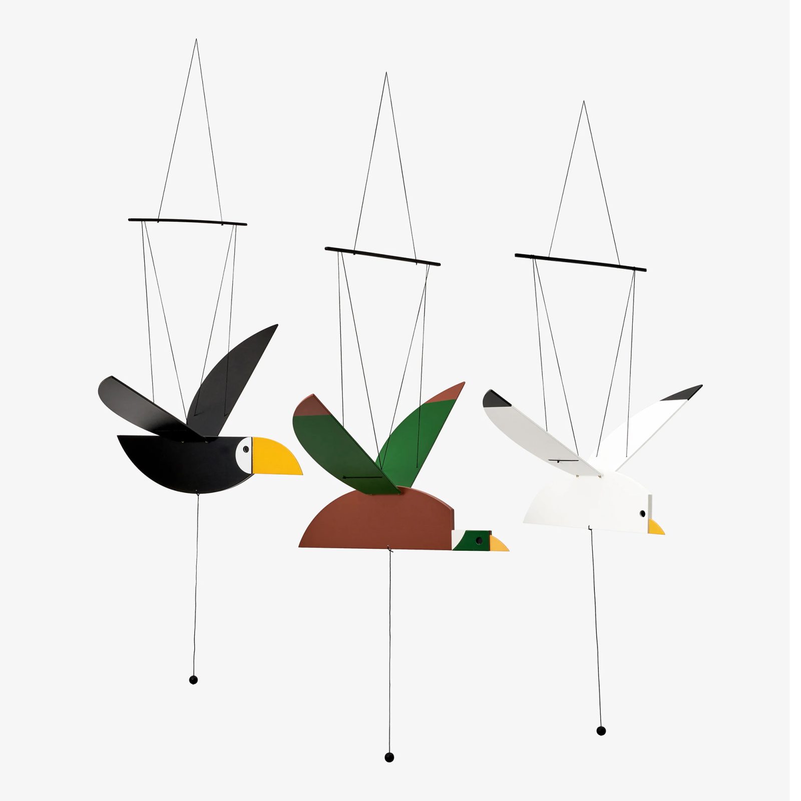 Let your imagination soar like a bird in flight with these fun toys from Areaware. Designed by Italian designer and artist Luca Boscardin, the Bird Mobile series brings different birds to life with graphic lines, bold shapes and intense color contrasts. Made from plywood, the birds boast a water-based paint finish. A string provides an easy way to animate the birds by making their wings move. Perfect for children’s rooms, the Bird Mobile also suits any area of the home you want to make more fun and whimsical. Install the wooden bird mobile on its own, or create a flock for maximum visual impact.