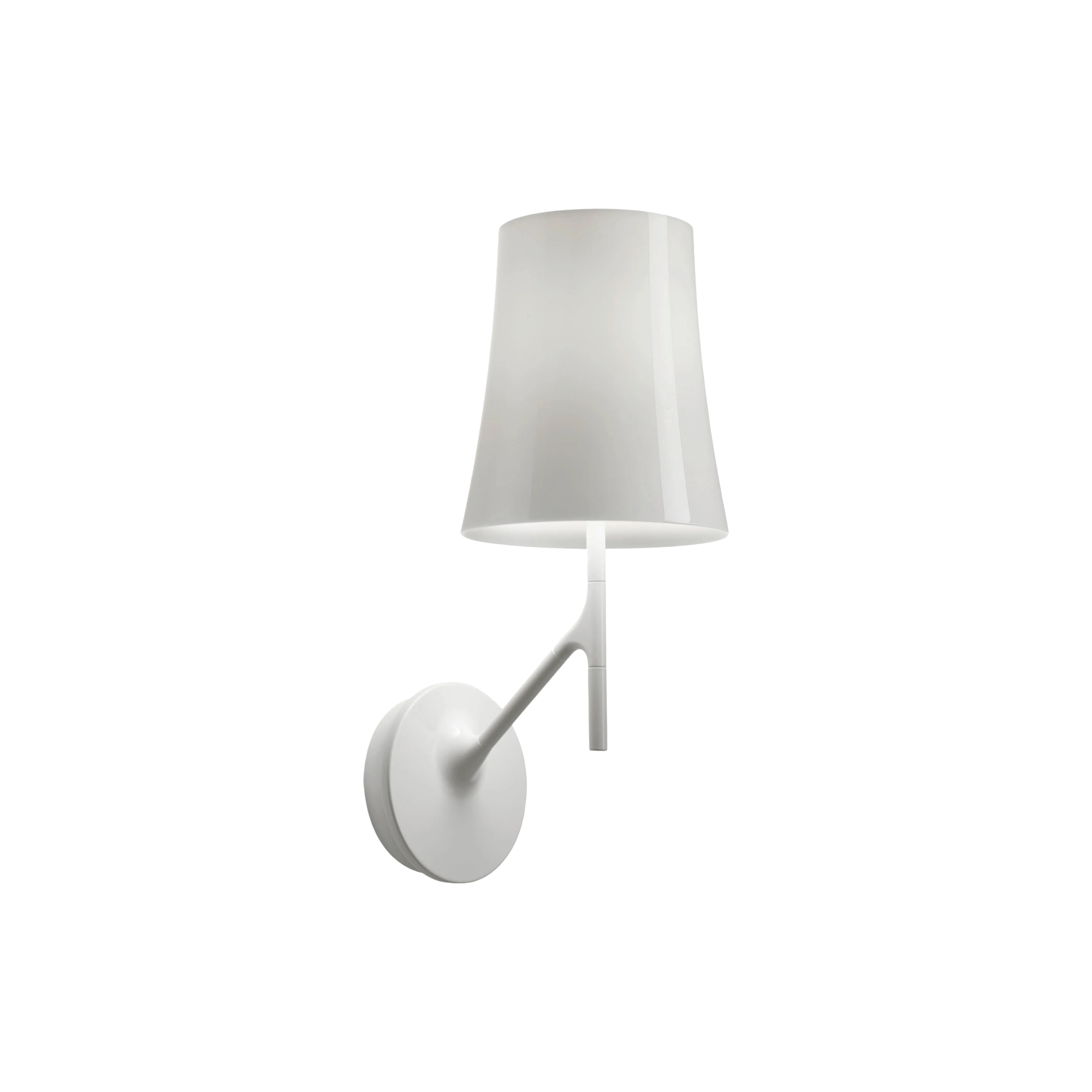 A slender stem leans out from the wall, ending in a small off-shoot that looks ready for a sparrow to perch—that playful detail explains the name, Birdie. Designed by Ludovica + Roberto Palomba, the sconce riffs on the archetypal reading lamp, swapping brass and fabric for light polyurethane and polycarbonate to keep the silhouette crisp and weightless. Switch it on and the glossy shade fills with an even, glare-free glow that’s ideal beside a headboard or flanking a hallway mirror. In matte white, Birdie blends quietly into plaster; in smoky gray it turns into a graphic accent that doubles as ambient art. Pair it with the floor or table versions to keep the “branch” motif running through the room, or let a single fixture add a wink of character to an otherwise buttoned-up space—one tap, one beam of gentle light, one small moment of charm.