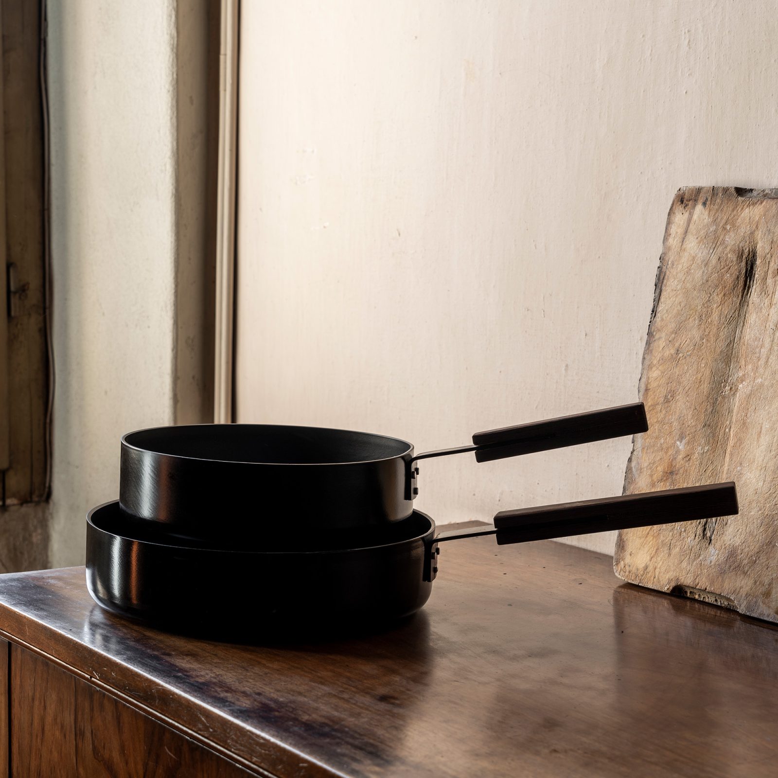 Perfect to prepare stews and one-pot meals or to braise meat, the KnIndustrie Black Low Casserole Ø. 28 cm offers excellent heat conduction for efficient cooking. Not to mention that it also looks elegant thanks to a refined design created by industrial designer Lara Caffi. Made from aluminum, this low casserole features a black finish and a dark brown, wenge wood handle. The non-stick coating makes cooking and cleaning a breeze, while also reducing the need to add extra oil. Sturdy and high-quality, the solid wood handle boasts subtly softened edges to offer a comfortable grip and perfect heat insulation. A great choice for amateur and pro cooks alike, the KnIndustrie Black Low Casserole Ø. 28 cm suits a wide range of dishes and cooking techniques. Plus, it’s compatible with gas, ceramic and induction stoves. A smaller version of this non-stick casserole is also available, along with a wok and pans of different sizes.