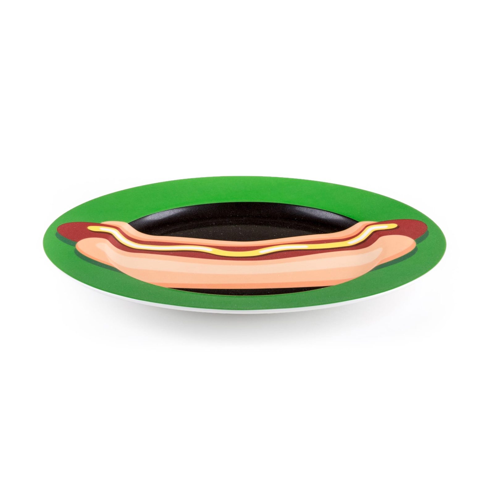 Specifically created for those who appreciate good design and art, the Blow collection offers an avant-garde take on furniture and dinnerware items. The porcelain plate range is no exception. Hot Dog brings a playful, pop art accent to any table setting. It features a detailed, 3D-effect vector graphic that combines brown colors with bold green and intense black. As a result, this hot dog plate will always stand out in a kitchen or dining room. Use it alongside other designs from the same collection – also available in our shop – for maximum visual impact. This porcelain plate is microwave and dishwasher safe, for more convenience.
