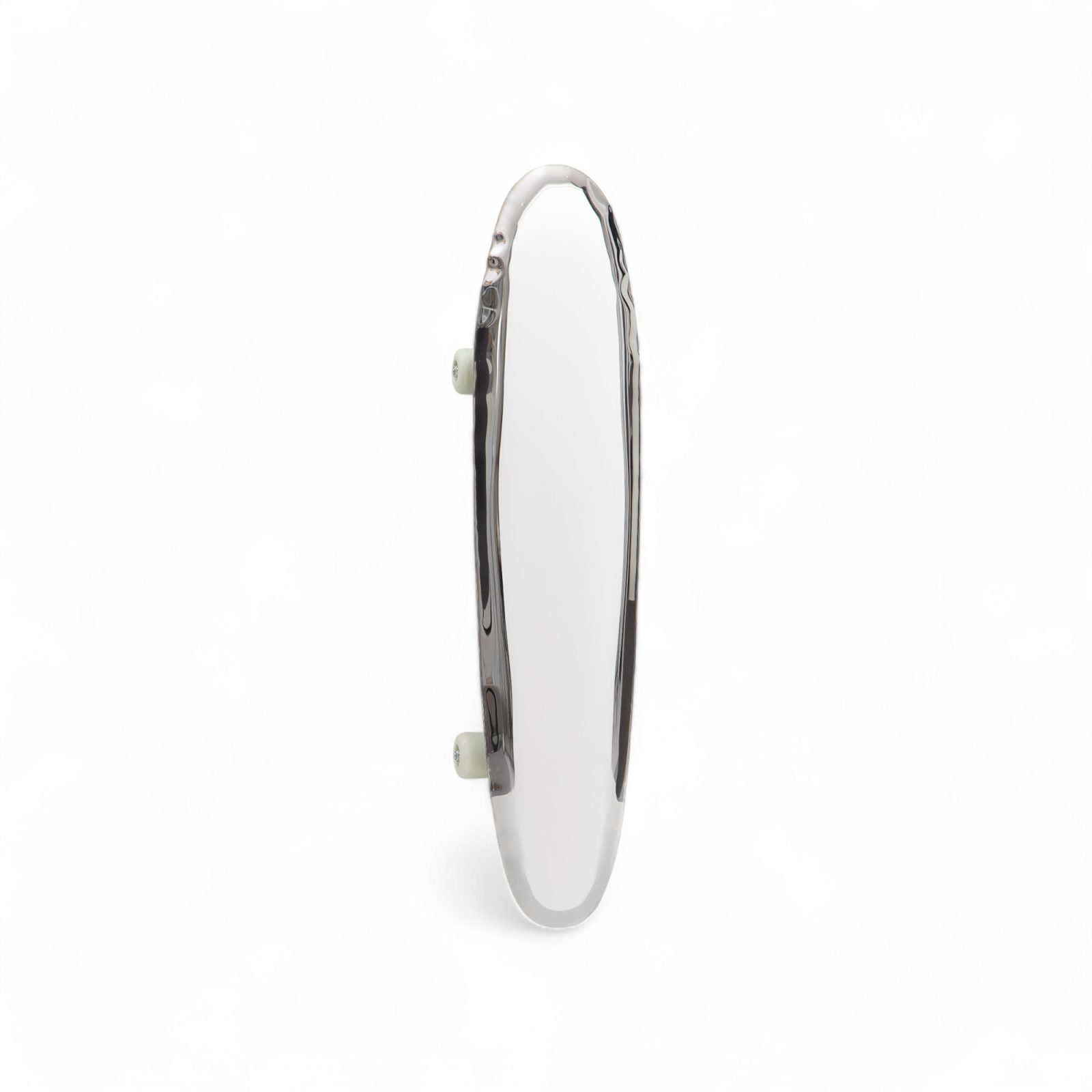 Designed to lean against or mount on a wall, the BOLID mirror serves as a bold artistic accent for modern interiors, combining utility with visual impact. Its oblong, streamlined design acts as a conversation starter while reflecting the motion and activity of everyday life.