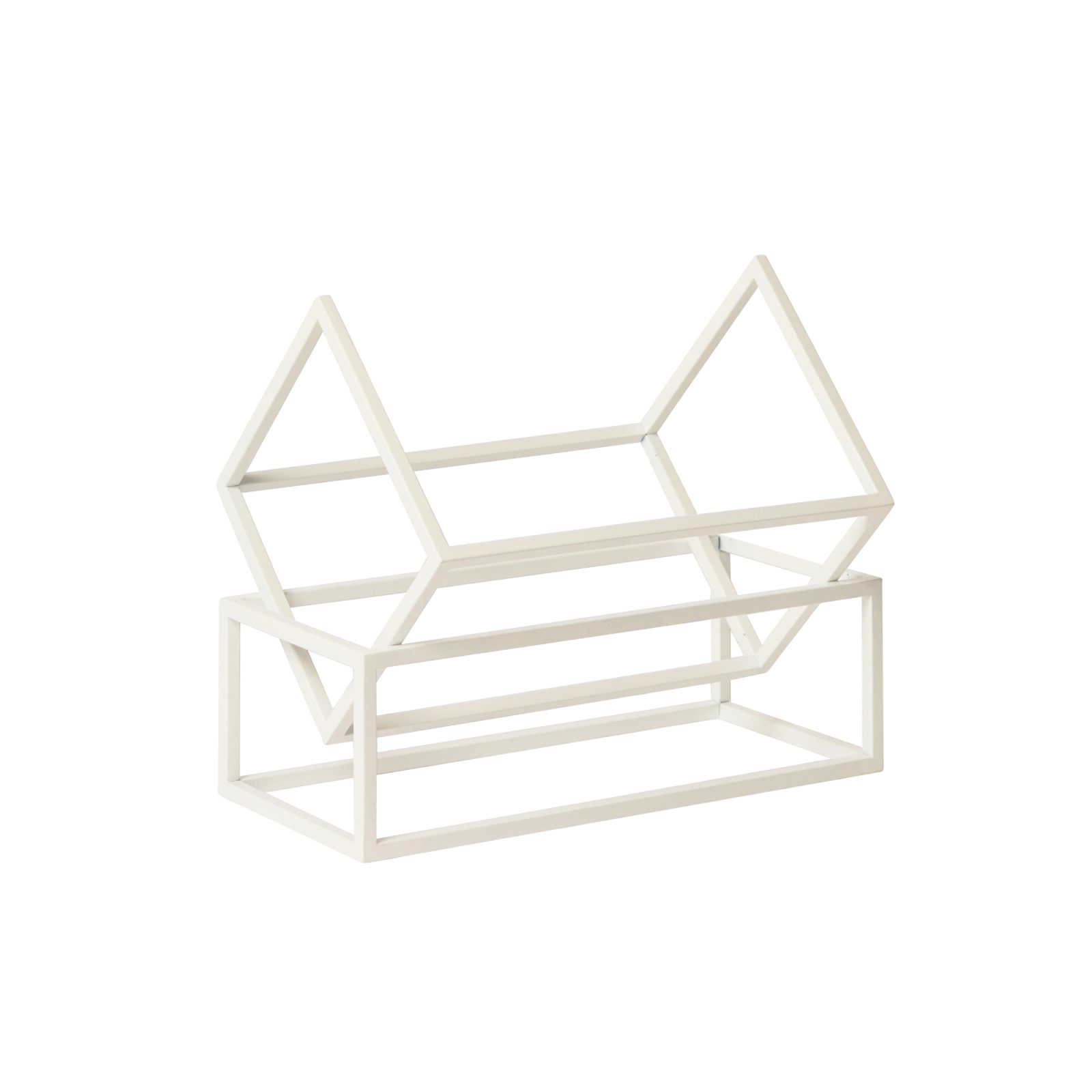 The Book Keeper is a book storage unit from Kristina Dam Studio, offering a straightforward approach to organizing and displaying books. Made from powder-coated steel, it comes in black and white options, ensuring compatibility with a variety of decorating schemes. The design includes two units: a base frame and an open shelf frame that together provide a stable, angled platform for books.