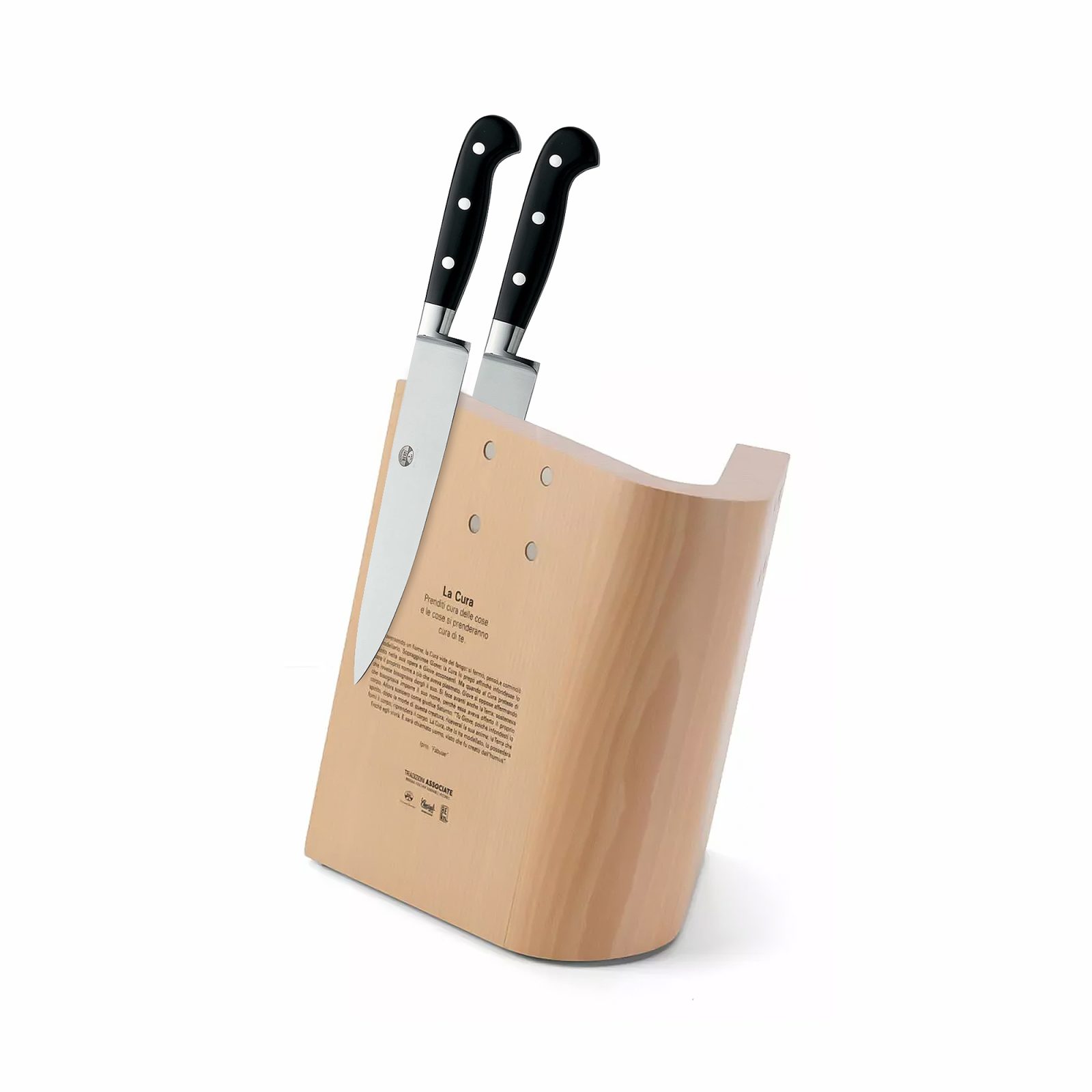 The Book Stump by Coltellerie Berti is a finely crafted wooden knife block designed to store knives neatly and keep them readily accessible. This functional piece doubles as a stylish addition to your kitchen decor. Featuring 5 pairs of magnets on the outsides and 5 pairs on the inner sides, it securely holds up to 10 knives. The open-book shape adds a touch of character, making it not just a tool but a statement piece for your kitchen.