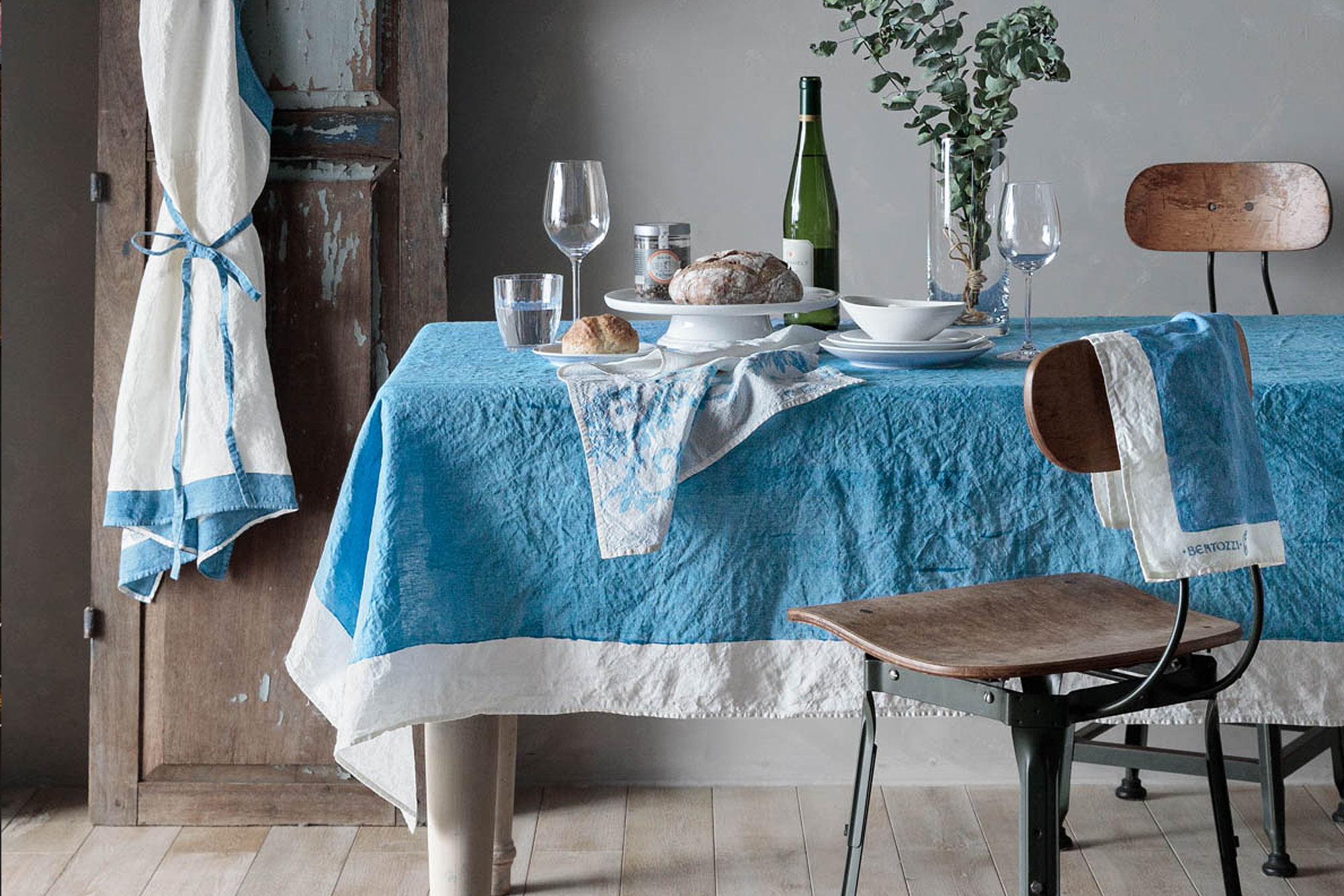 Production runs on solar power. Dyes are plant-based where possible, colors are fixed with a process they developed in-house, and their trademark rust tone comes from a guarded mix of powdered iron, vinegar, and flour. Indigo is sourced from Isatis tinctoria; other hues come from regional plants and ongoing R&D. Motifs draw from the archive and the local landscape—sea, flowers, everyday textures—so new pieces sit naturally alongside a century of work.