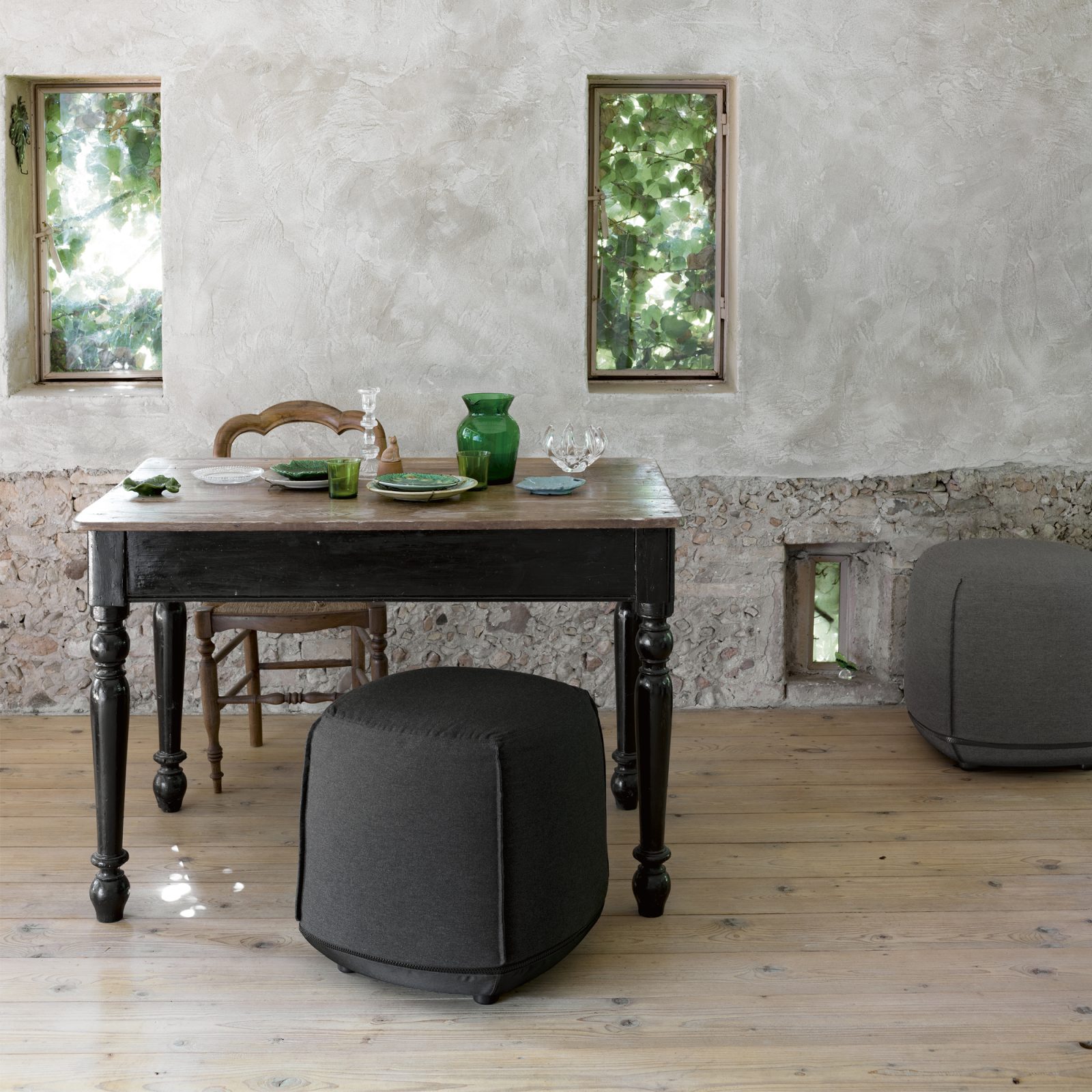 Inspired by the archipelago in the Adriatic Sea of the same name, Brioni is a collection of seats comprising lounge armchairs, daybeds and poufs with a soft and full appearance. Initially designed for outdoor use, the six items in the Brioni collection have been redesigned by LucidiPevere for use in homes: the entire surface of the seat is now covered in fabric or leather, without the dark lower band that prevented contact with the ground. It has a zip, an aesthetic and functional detail, like the previous version, as well as soft polyester padding with plastic slats. Light and easy to move, the poufs are perfect when positioned next to the sofa, whereas the armchairs and daybeds are comfortable and versatile seats that invite you to relax.