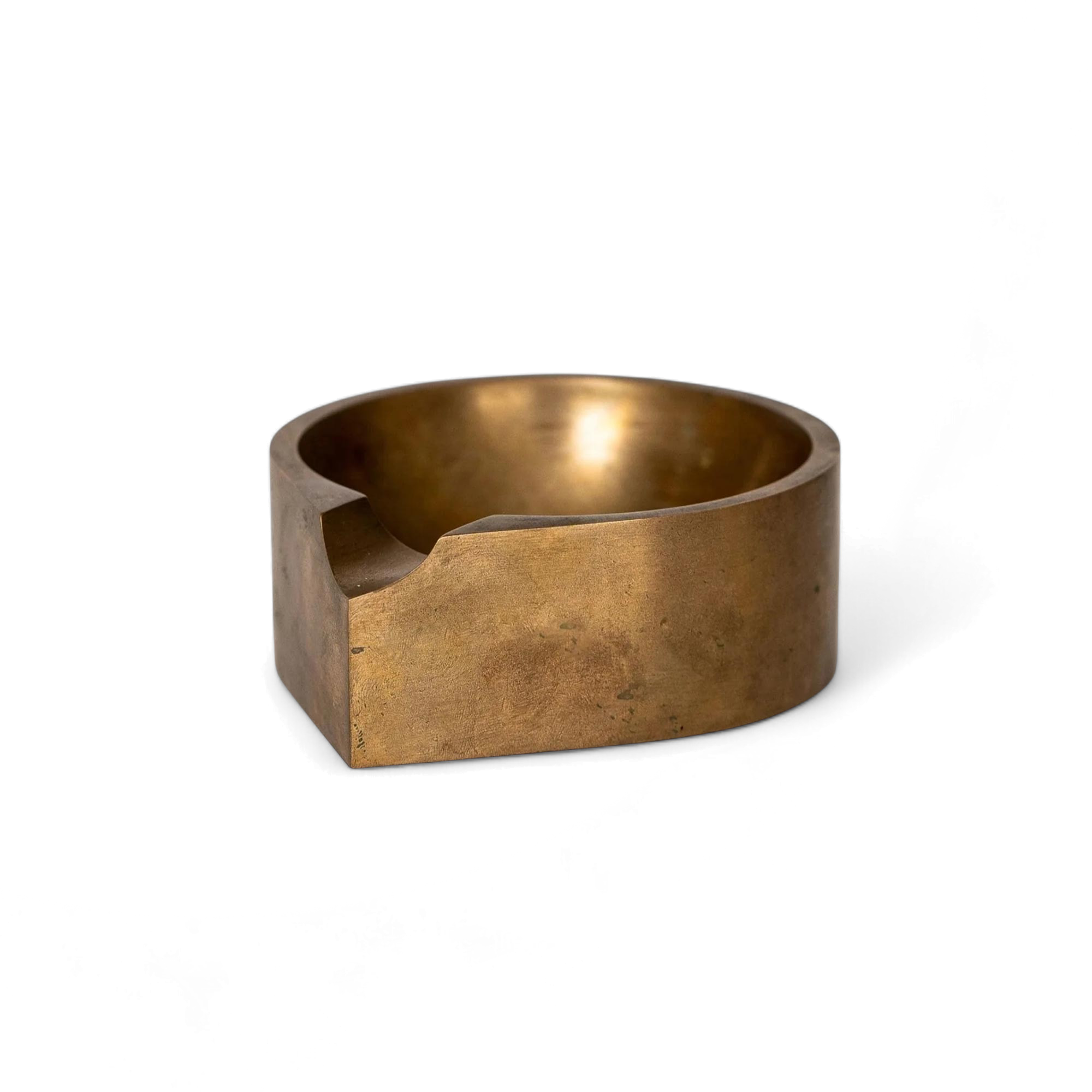 A low circular well and thick, blunt walls keep ash contained and the cigar steady. The metal’s warm tone throws back a soft glow; the mass feels reassuring in the hand. With use, the surface develops character—darker at the rim, brighter where fingers land—so no two look the same over time.