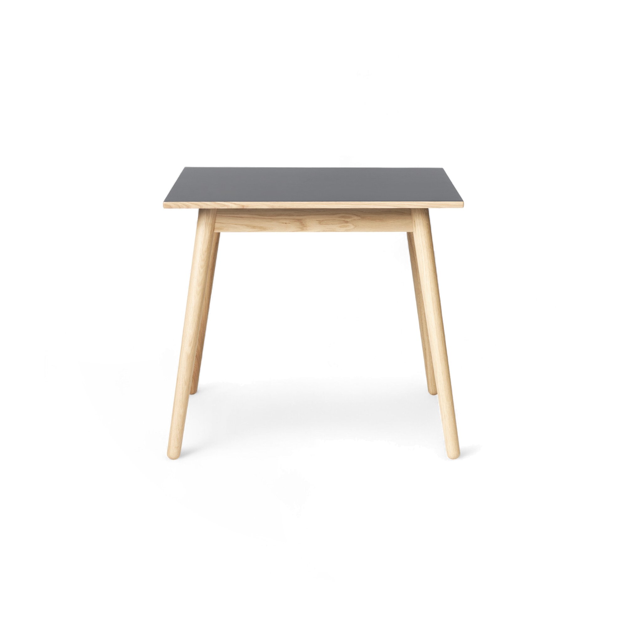 This square dining table reflects Volther’s functional design approach—light in appearance but structurally solid, it offers room for four without overwhelming a space. The frame is made of solid wood, paired with a durable laminate or linoleum top that handles daily use with ease. Subtle details, like the softly rounded edges and slightly angled legs, give the piece a sense of ease and clarity.
