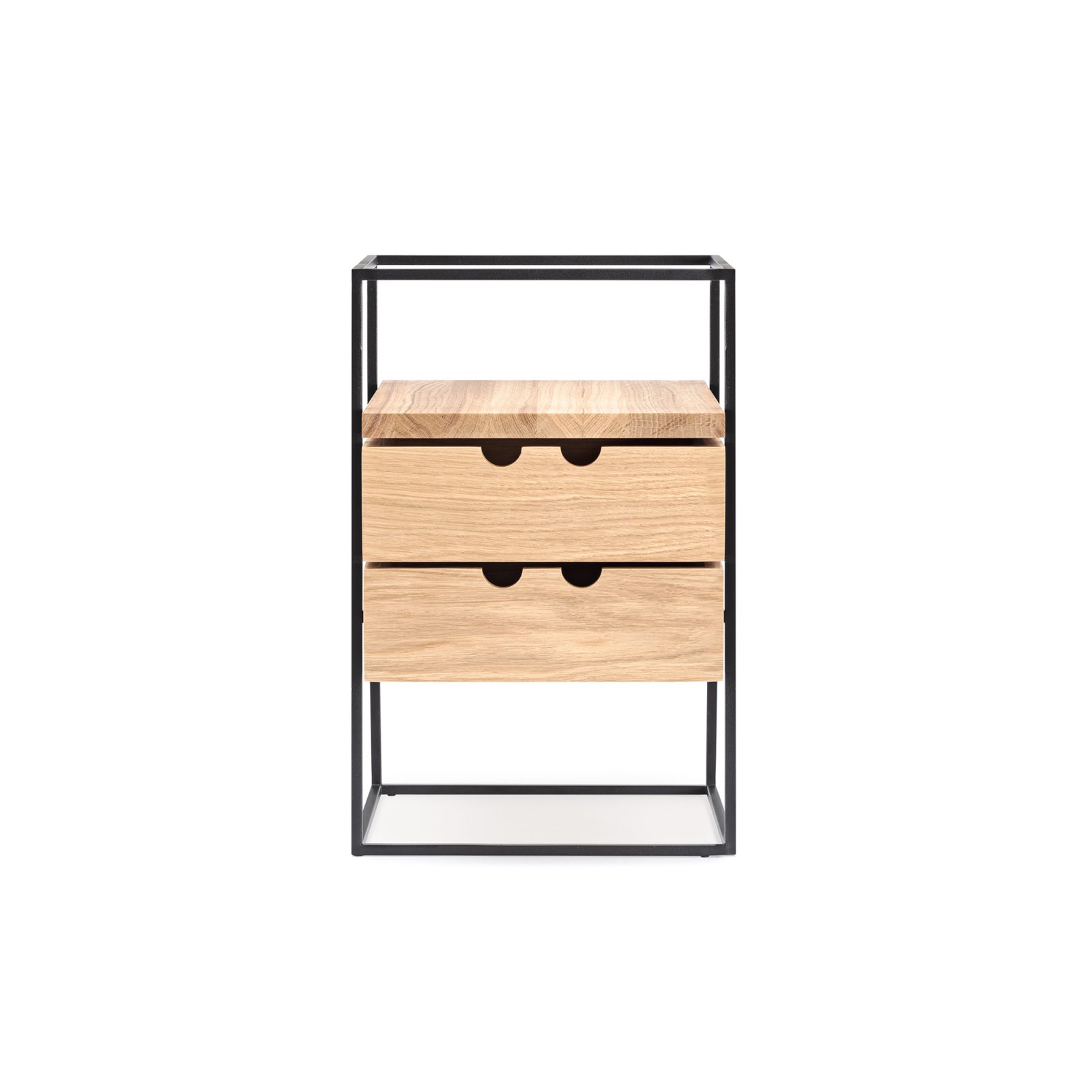 From home offices to living rooms and hallways, the Karakter Cache Console Table is perfect for any space where you need a place to work, display and store items, or organize accessories. Designed by Paul McCobb, this table is elegant and airy thanks to an extra-slim metal frame and a thin wood top. While the steel frame boasts a black powder-coated finish, the top features an oak veneer with a light, natural color and a clear lacquer. The Karakter Cache Console Table comes on its own or with two optional solid wood drawers that attach underneath the top and feature rounded cut-outs for handles. Furthermore, this table is also perfect to use with the Cache Organizer from the same series.