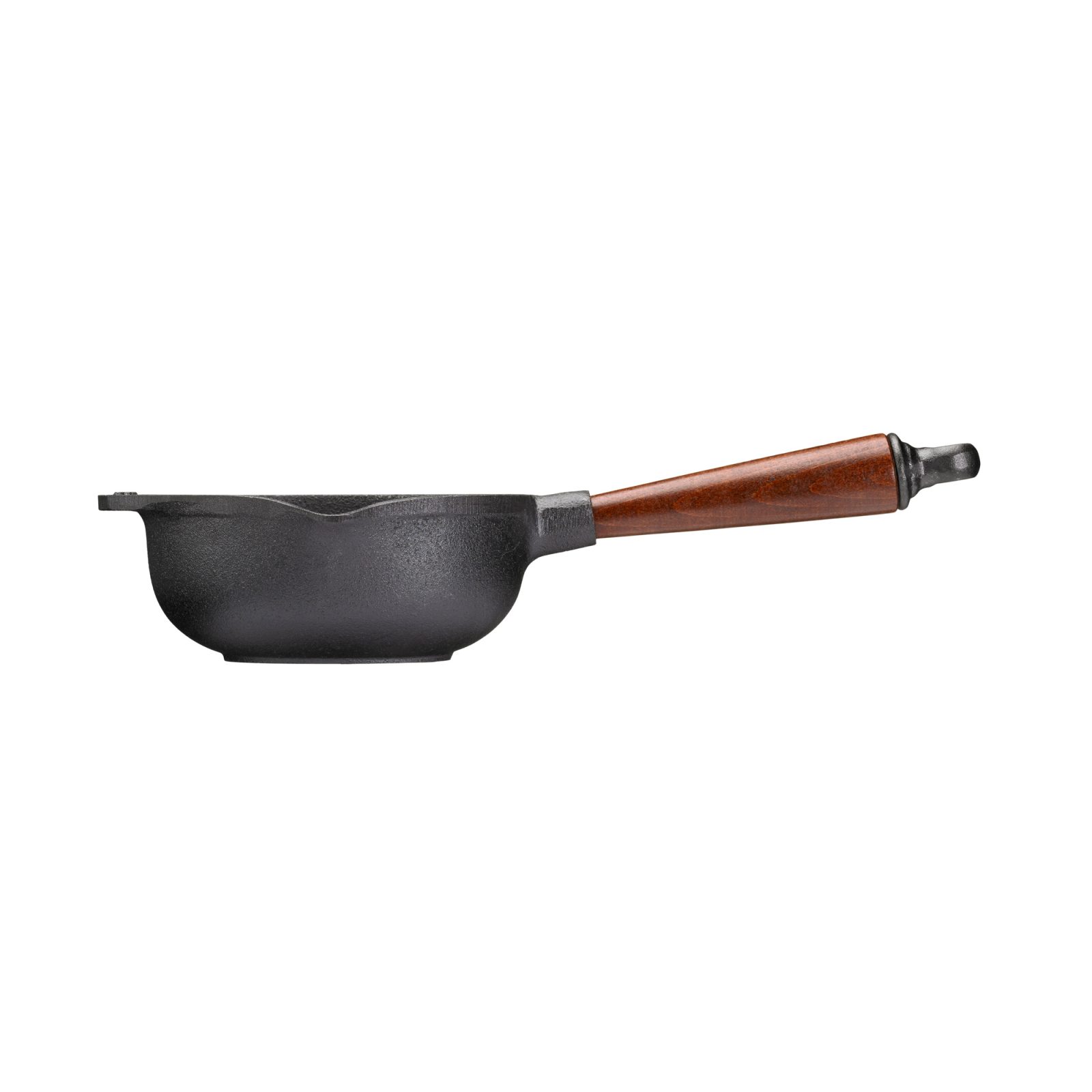 Prepare sauces like a pro chef with the Skeppshult 6’’ Sauce Pan. A must-have for anyone who loves cooking, the Skeppshult cast iron cookware range offers a complete solution to up your game in the kitchen. This sauce pan is handmade from cast iron with a .20’’ thick bottom for even heat conduction. A spout allows you to easily pour the sauce in a bowl, plate or vessel, while the walnut wood handle has a rounded shape to fit perfectly into your hand. Like other pots and pans from the same collection, this sauce pan has a precision milled bottom and hand-ground edges. Finally, this pan is carefully seasoned with organic canola oil which gives it a non-stick surface.