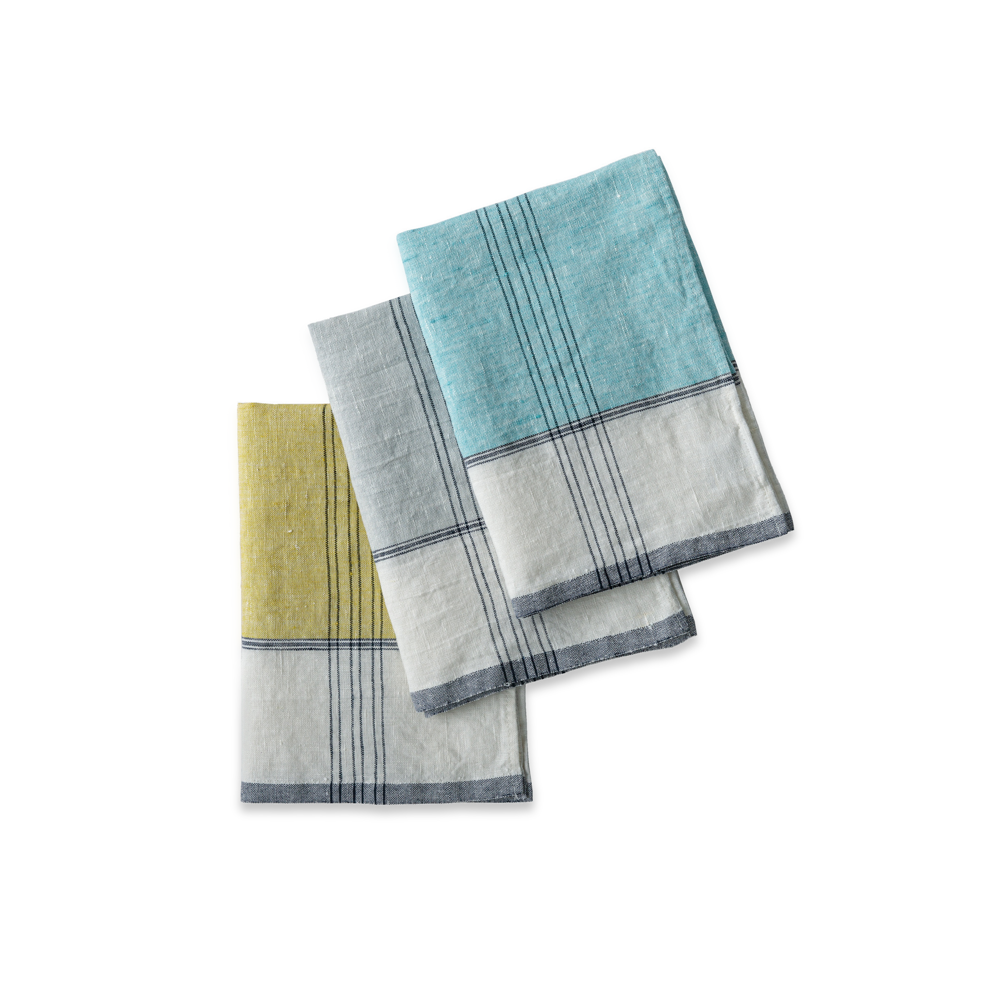 Each towel combines a broad band of color with fine stripes and a neutral base, giving it a casual, graphic look that works in both modern and traditional kitchens. It dries quickly, softens beautifully over time, and holds up to constant use—one of those quiet essentials you end up reaching for every day.