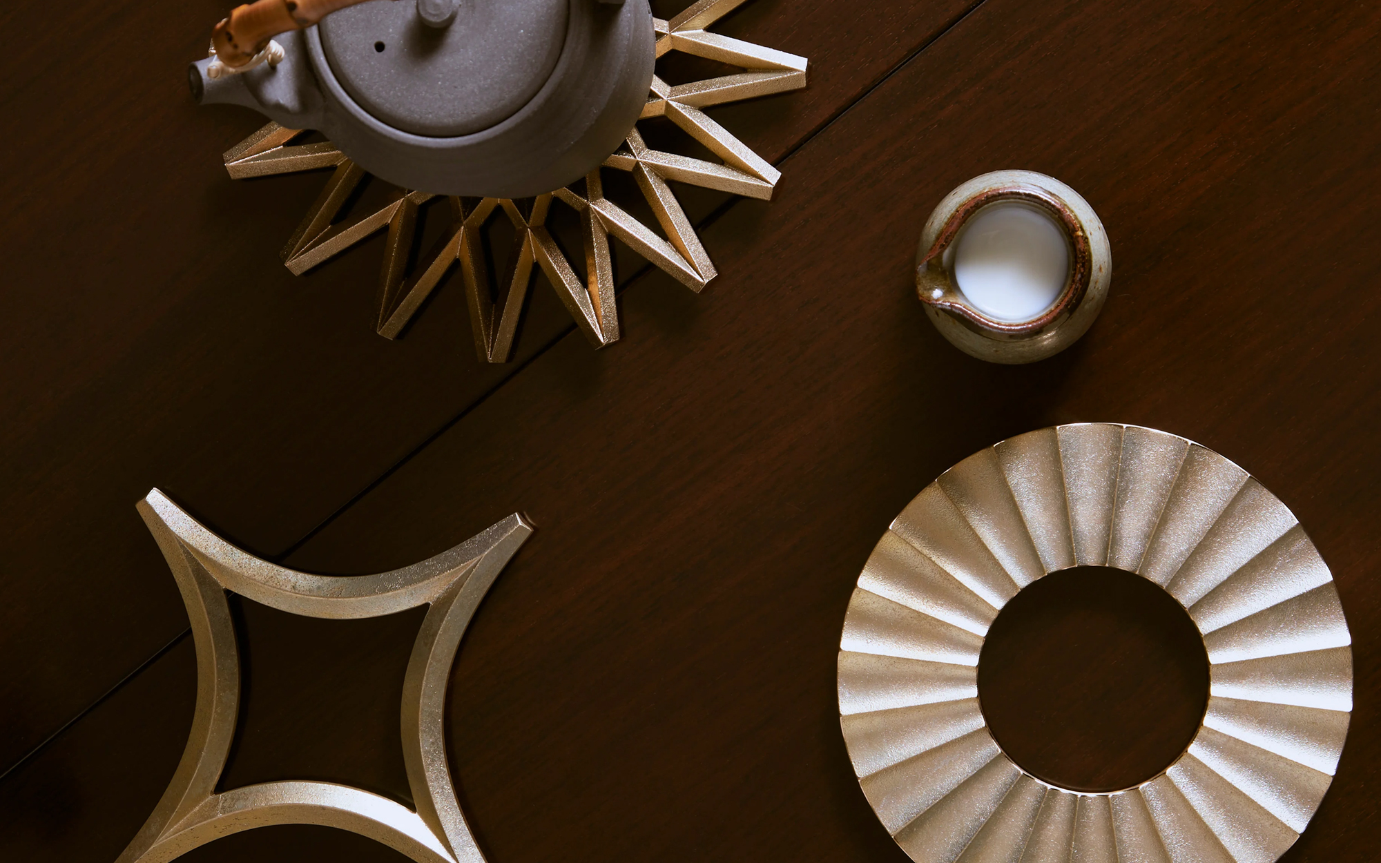 Bring celestial elegance to your dining table with the Futagami Brass Trivets collection. Handcrafted in Japan through traditional sand-casting, each of these brass trivets—Moon, Sun, Star, and Galaxy—features a distinctive textured surface inspired by heavenly bodies. The brass is designed to evolve, gaining warmth and character through natural oxidation. Versatile, practical, and stylish, these trivets protect surfaces while adding a refined sculptural presence to your home. Mix and match or collect all four designs to create a cohesive cosmic-themed tablescape.