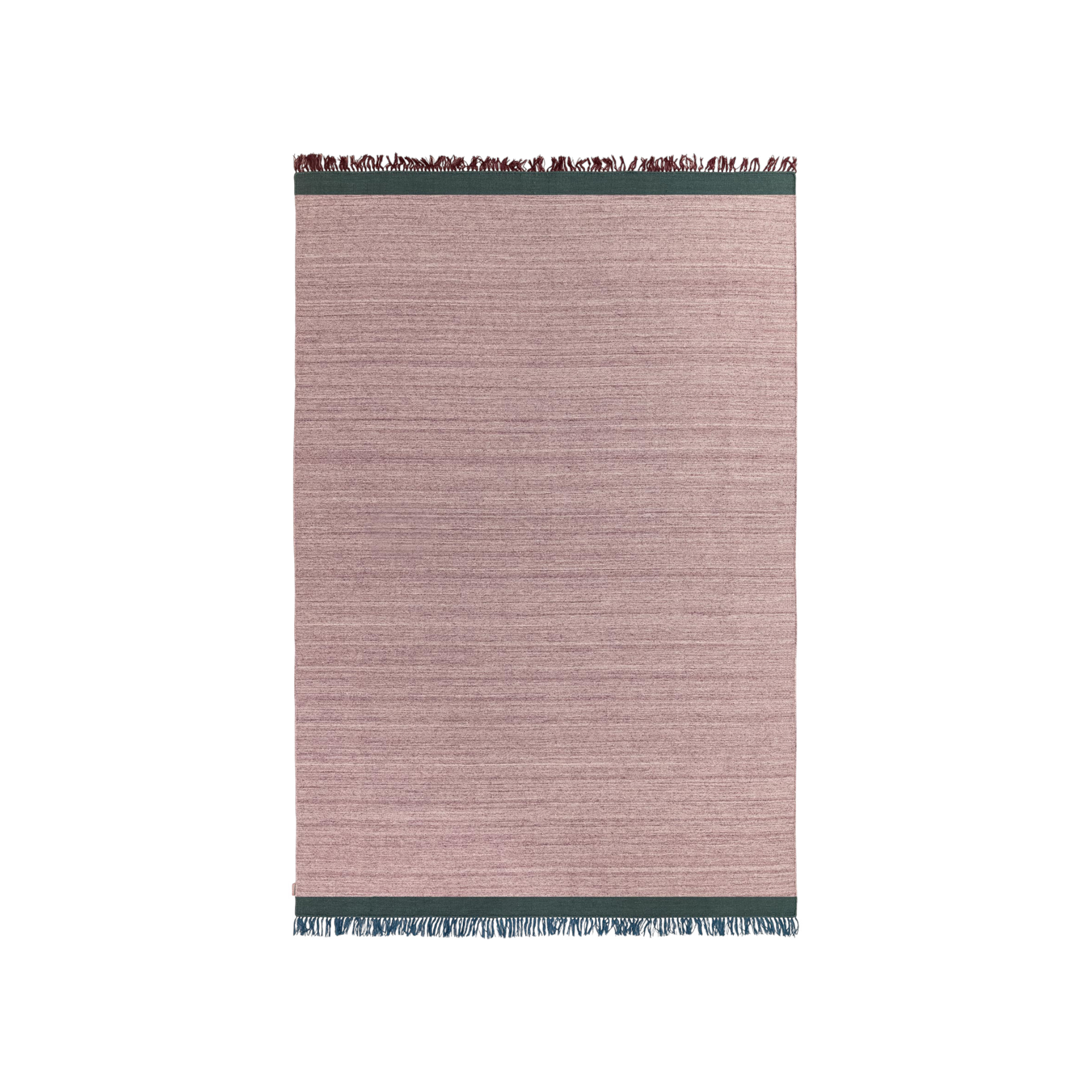 Each version is finished with narrow colored borders and short fringes at the ends. The borders sit slightly off-balance, giving the rug a gentle visual shift instead of a centered frame. The fringes feel light and flexible, more like an edge detail than a feature. The surface feels thin and easy underfoot. It lies flat, layers well with furniture, and moves easily from one room to another. The texture stays consistent, while the color changes softly across the plane.