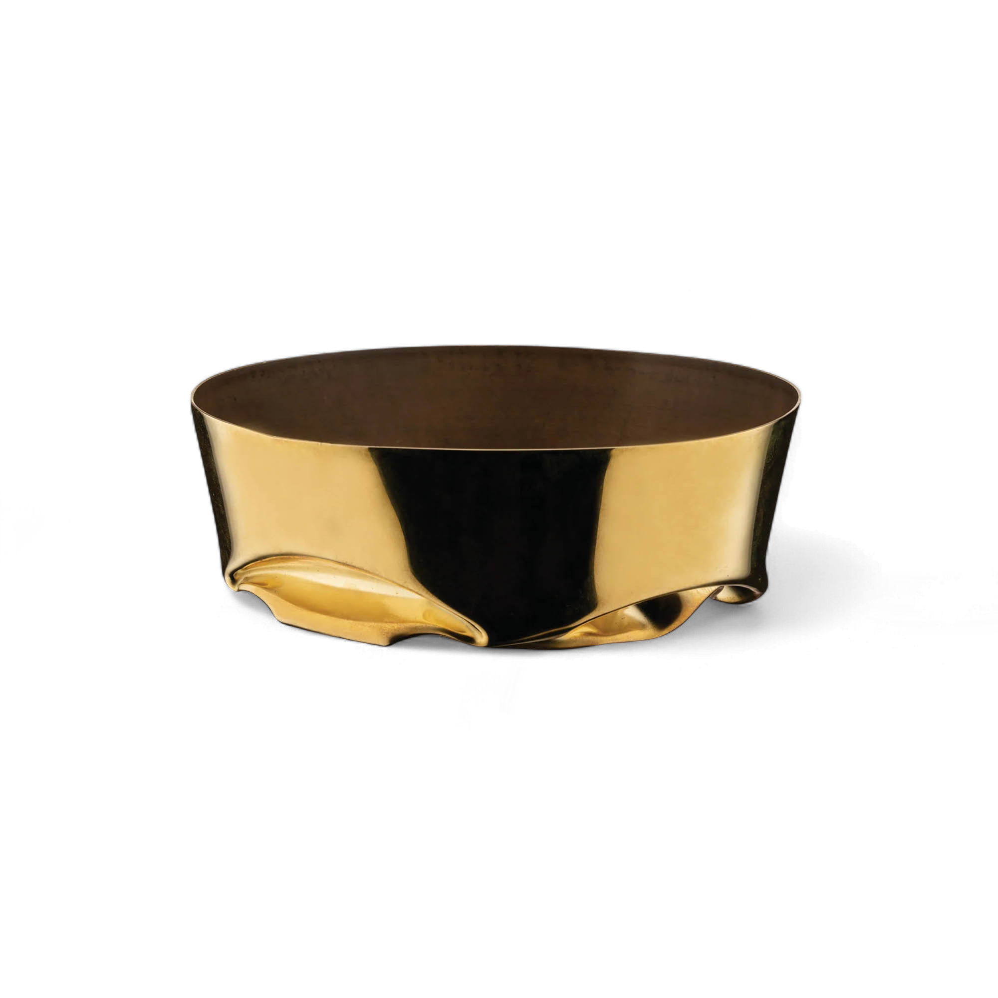 At just under 5 inches across, Compressioni lands perfectly on a console or nightstand, catching keys, rings, or wrapped chocolates while gleaming like liquid gold. A thin coat of clear lacquer keeps tarnish at bay; wipe with a soft cloth to maintain the shine. Part of Ulian’s three-piece exploration of “controlled deformation,” the tray proves that one bold gesture can coax unexpected beauty from a simple sheet of metal.