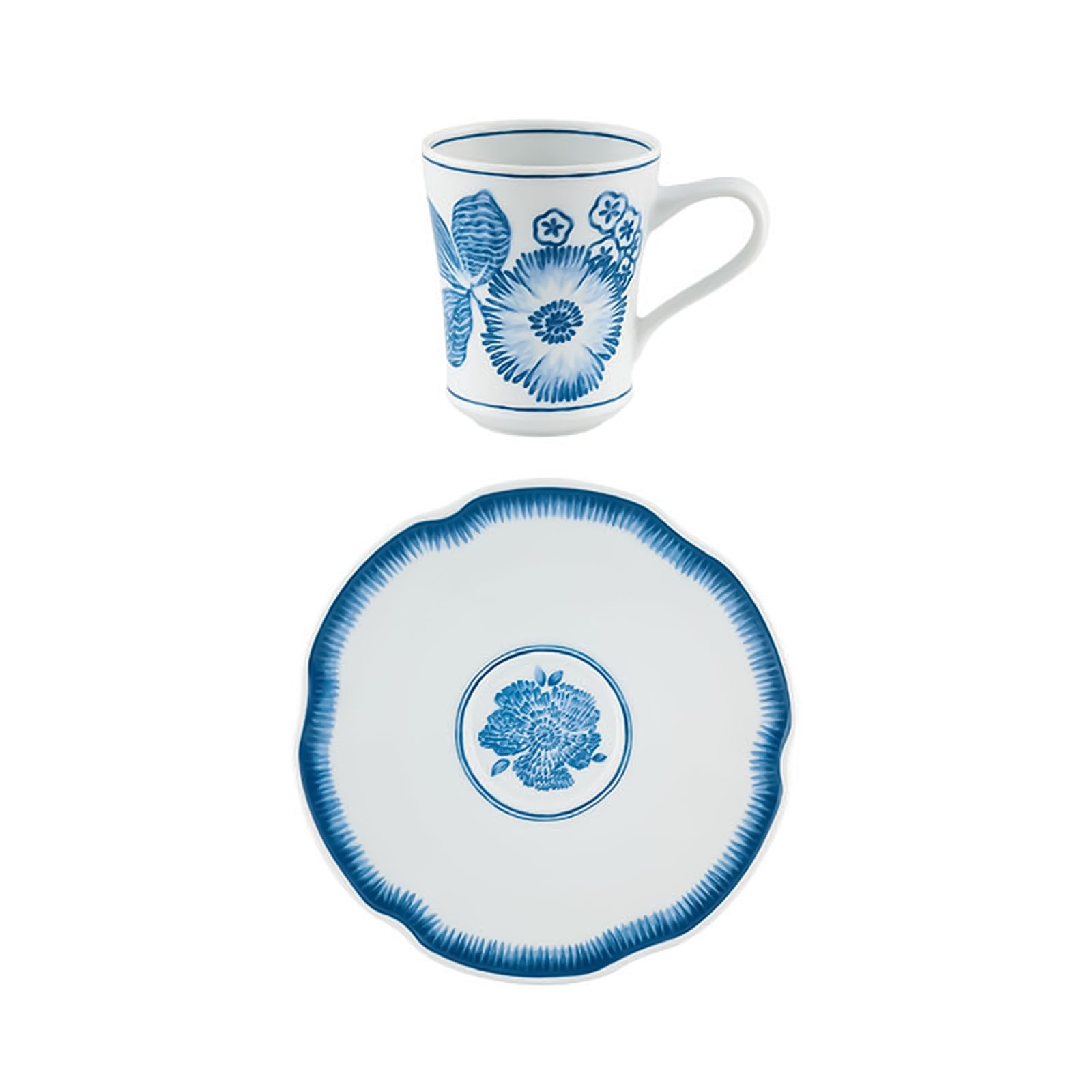 Crafted from the finest porcelain, the Coralina Blue Coffee Cup & Saucer set promises beauty and durability. The rich, vibrant colors make this floral cup set an eye-catching addition to any tea party or gathering.