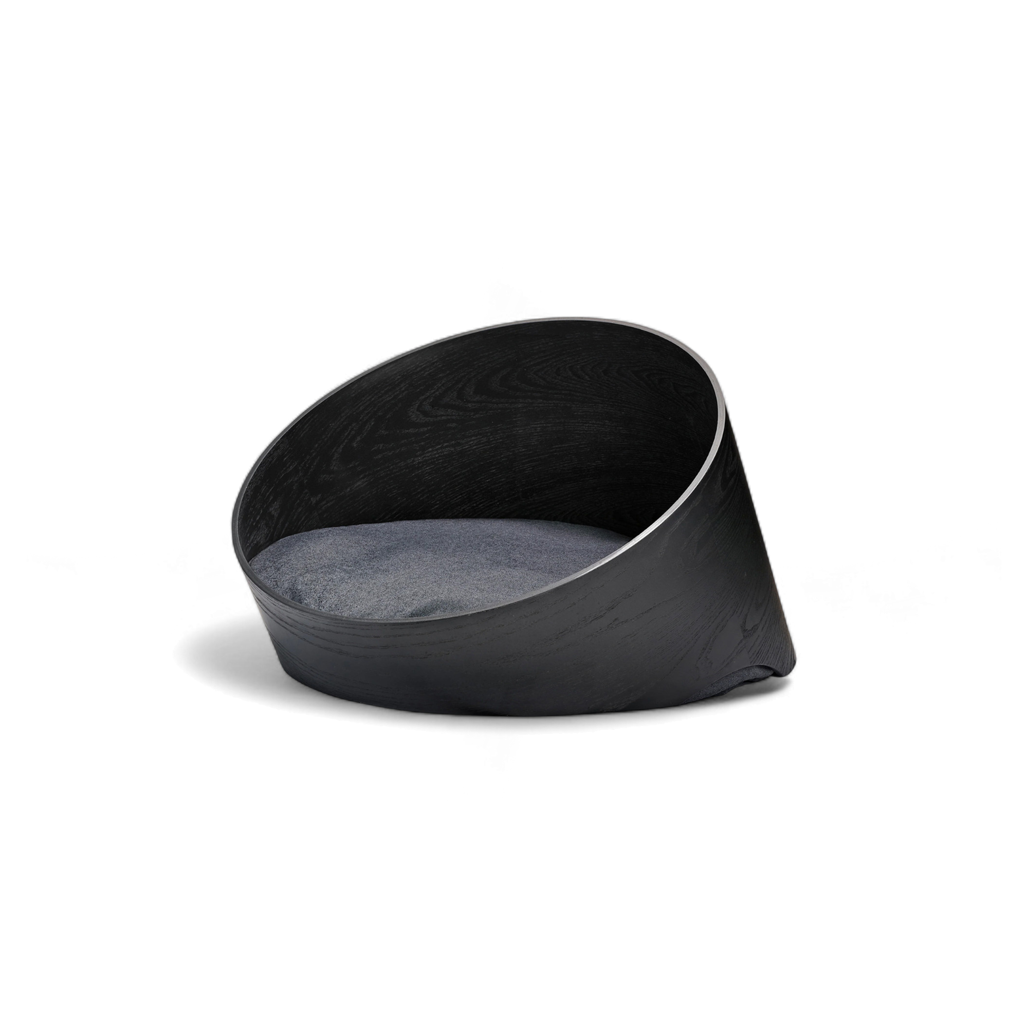 Covo is a circular dog bed with a gently raised backrest, shaped from a continuous band of real wood. The form offers structure without enclosure—high enough to give a sense of shelter, open enough to feel part of the room. The insert sits low and firm, made from orthopedic foam that keeps its shape and supports the body over time. The cover is cut from soft acrylic fabric, durable to the touch, and finished with a hidden zipper for easy removal. Everything is built with care, from the curvature of the shell to the feel of the textile. It’s a quiet object that lives well in the home.