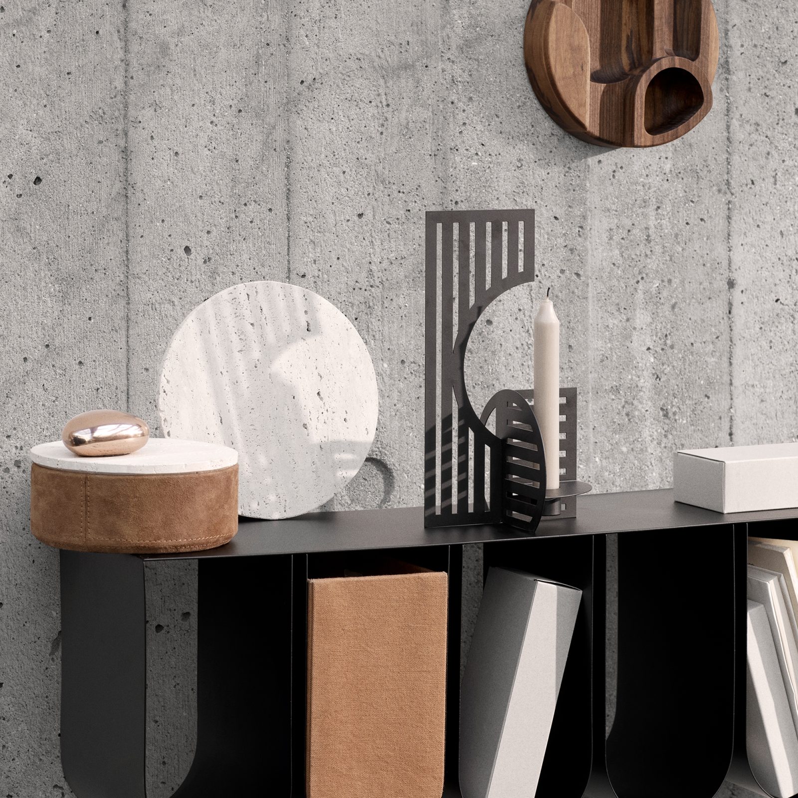 Add a dashing accent to your home décor with the Kristina Dam Studio Dash Candlestick. Inspired by the Bauhaus art school, this candle holder uses clean geometric forms and lines to transform the light of a candle into a mesmerizing show. As the wicker burns, the flame creates shadows on the table, shelf or wall, accentuating the contrast between the horizontal and vertical lines. Perfect as a decorative accent with or without a lit candle, this candlestick is made of powder-coated steel with a matte black finish, to add a graphic expression to any décor. Use this candle holder on its own or alongside the Shadow Candlestick from the same series. Perfect as a gift for a Bauhaus fan and design lover, the Kristina Dam Studio Dash Candlestick suits standard cylindrical candles and tapered candles.