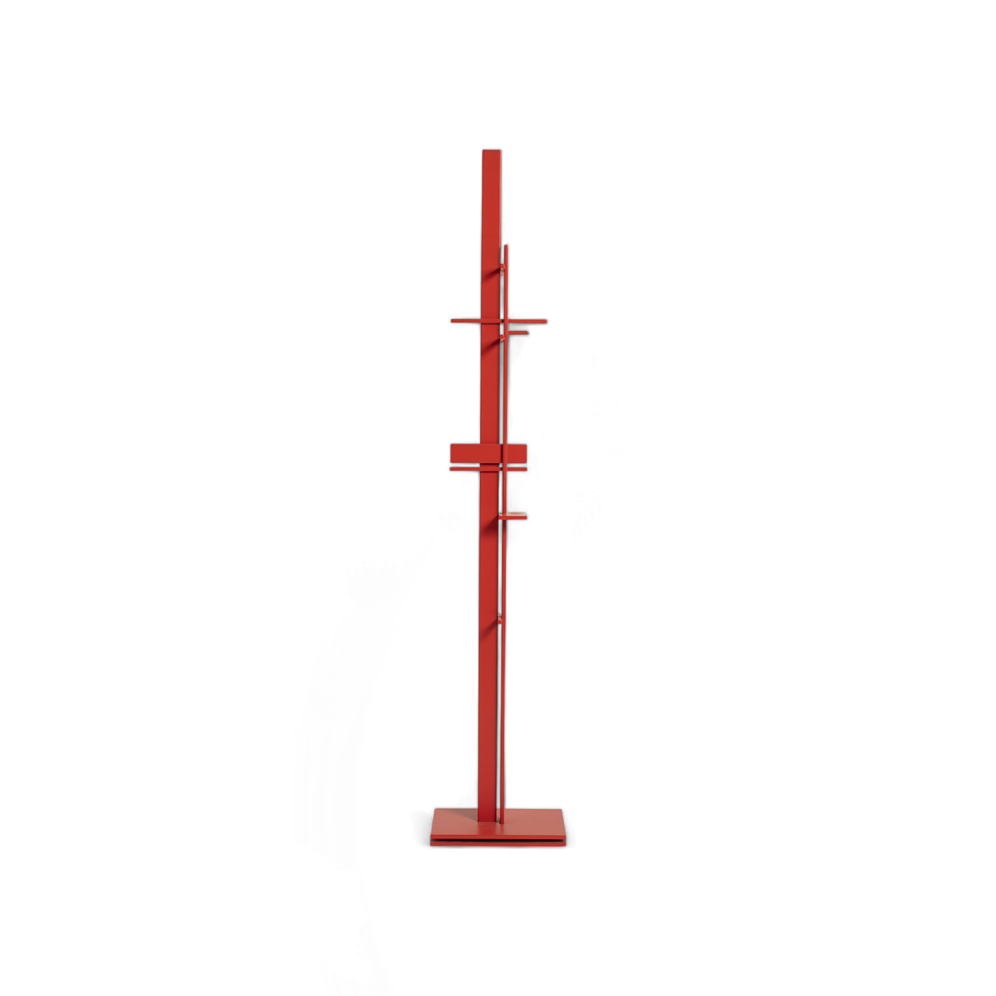 Dash is a minimalist coat stand defined by structure, balance, and graphic precision. Composed entirely of metal, it features a vertical core with offset rods and geometric cutouts that provide functional spots for hanging coats, hats, umbrellas, and keys—without ever cluttering the visual field.
