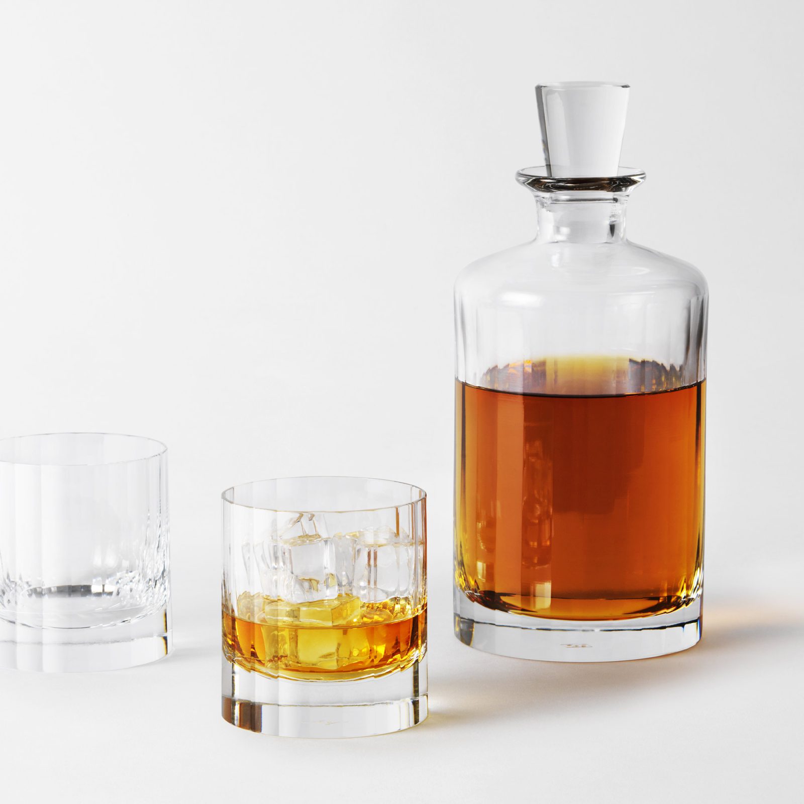 Bring a 1920s vibe into your home bar with the Fluted Decanter from Richard Brendon. Originally designed for the American Bar at the exclusive Gleneagles Scottish hotel, the Fluted line draws inspiration from the cocktail culture of the early 20th-century. The decanter features a blend of vintage and contemporary details, brought together in a refined design. Mouth-blown by skilled craftspeople, the glass boasts elegant fluted cuts running alongside the length of the decanter. Clean lines and a smooth finish on the stopper complete the design. While great on its own, the Fluted Decanter looks its best when paired with the glasses and ice bucket from the same collection.