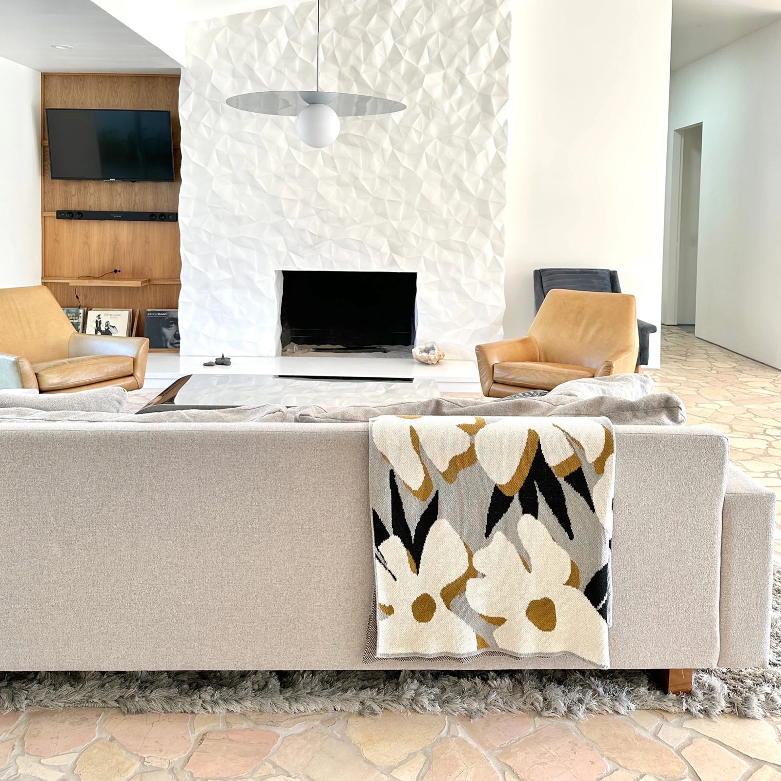 Refresh your living space with the soft elegance of the Desert Flower Throw in Dove. Featuring bold floral graphics in cinnamon, dove grey, black, and ivory tones, this throw adds a sophisticated yet cozy touch to any room.