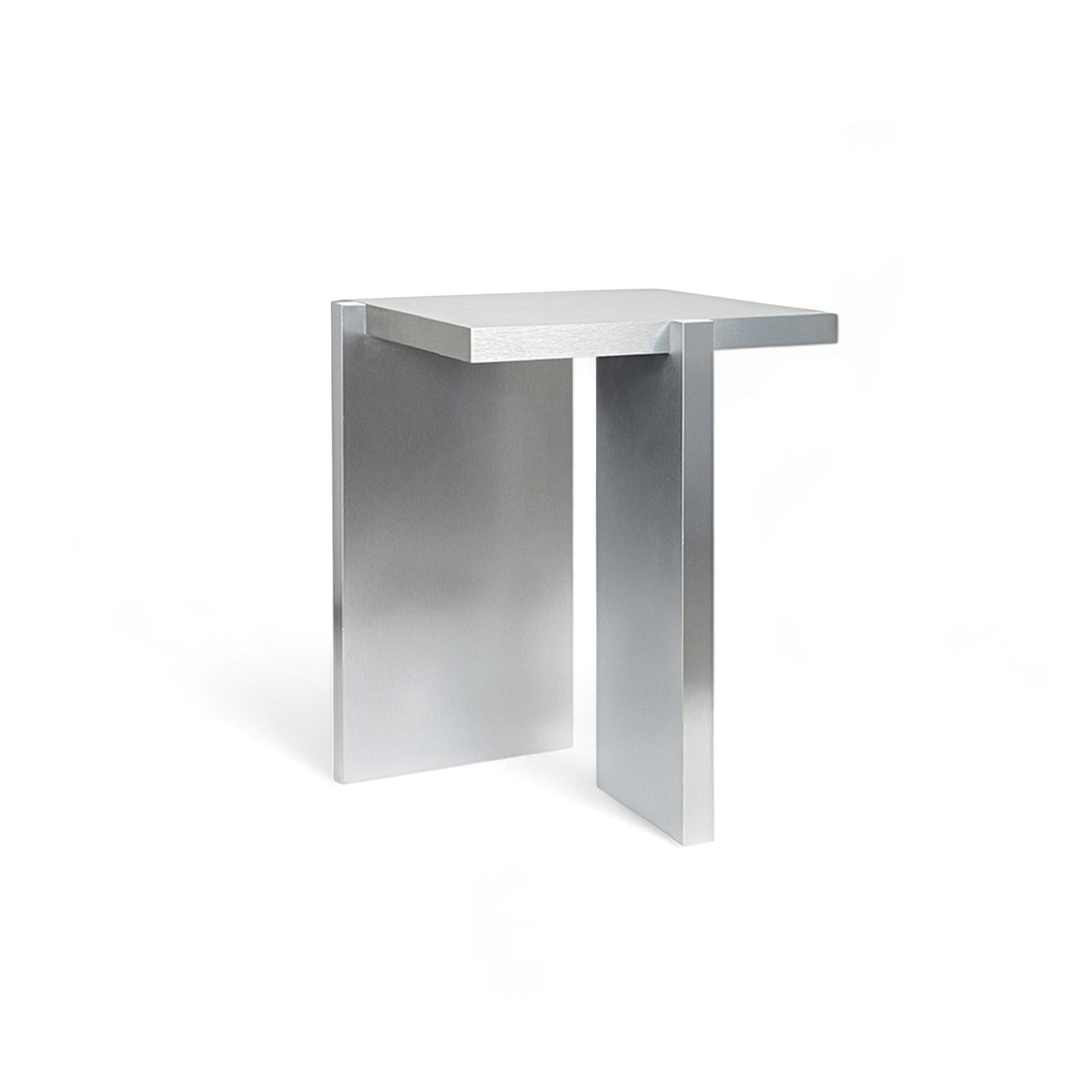 Bold and elemental, the Dolmen Side Table takes its name from the ancient stone structures it quietly echoes. With its sharp angles and solid stance, it feels more like an architectural fragment than a piece of furniture. The brushed metallic laminate catches light with a soft gleam, giving the form a cool, sculptural presence. Its simplicity is its strength—three planes intersect, no ornament, no flourish. Whether placed next to a sofa, beside a bed, or used as a standalone accent piece, Dolmen lends weight and quiet clarity to a space.