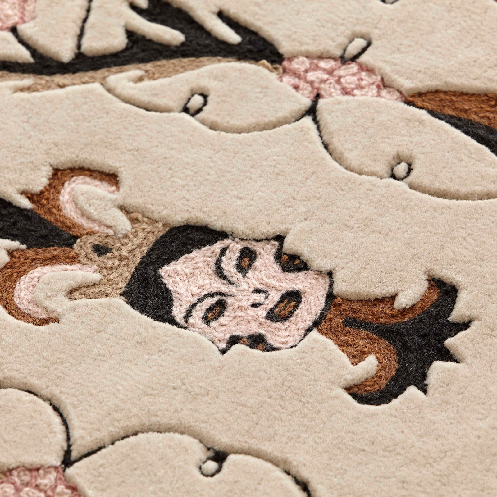 The Dreams Medieval Faces Rug by Brianda Fitz-James Stuart translates her signature artistic vision into a textile piece with strong visual impact. Inspired by medieval motifs, the rug features an expressive hand-drawn composition that adds character and depth. Hand-tufted with chain stitch embroidery, it highlights detailed craftsmanship and a textured surface. The single-color design accentuates the intricate pattern, making it a distinctive element in any space. Part of the Dreams collection for GAN, it is available in two sizes.