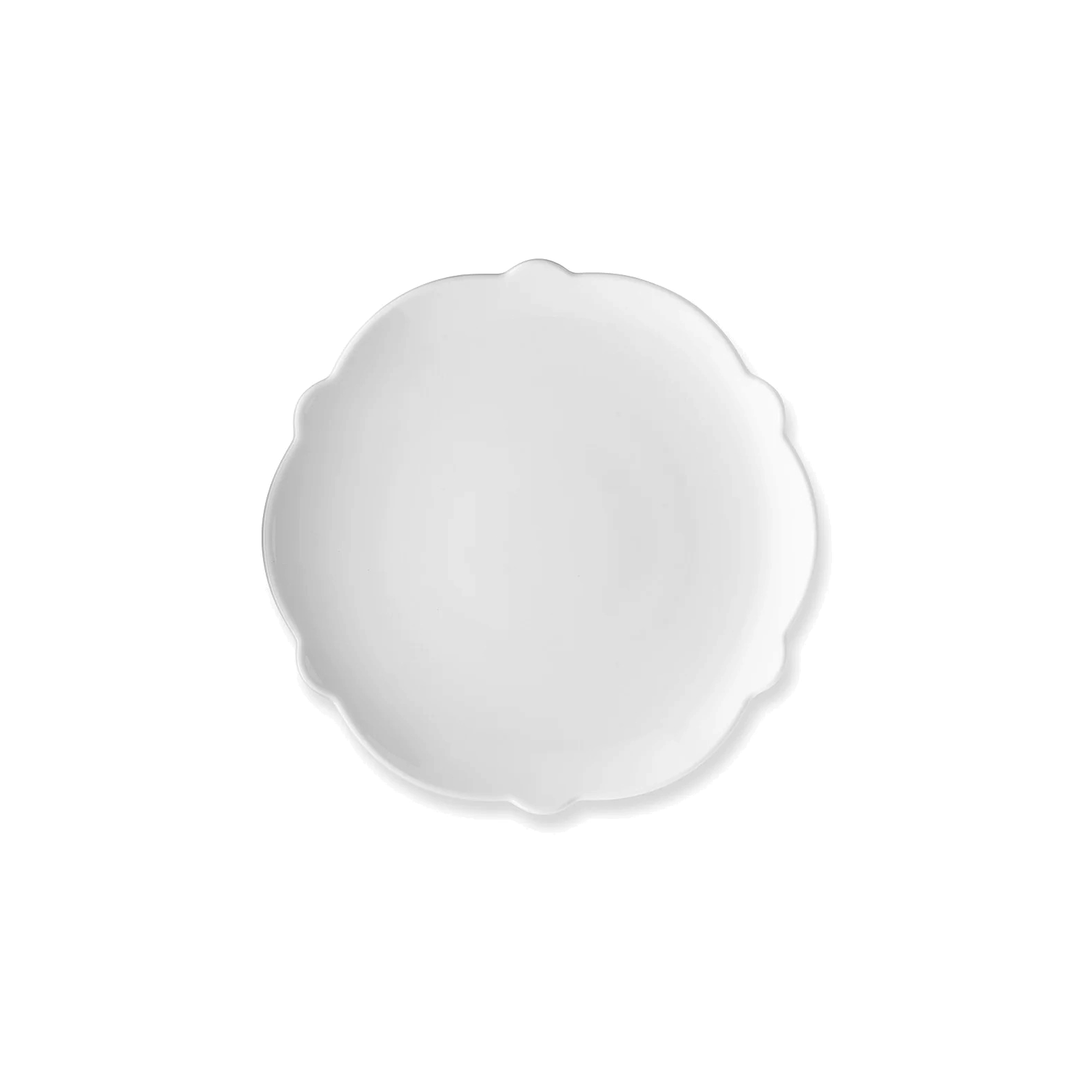 A gentle scallop drifts around the rim of Marcel Wanders’ Dressed side plate, catching light like a pressed lace edge without tipping into fuss. The rest is clean, bright porcelain—no embossing on the face, no color to compete with whatever lands at center stage, be it a citrus tart, folded prosciutto, or a sliver of manchego. At eight inches across, the plate feels roomy on a crowded table yet stacks neatly when the night winds down. Sold in a set of four, each piece balances Alessi’s knack for everyday utility with a quiet nod to ceremony: small enough for aperitivo, crisp enough for dessert, sure-footed in the dishwasher, and ready to mingle with modern or heirloom settings alike.