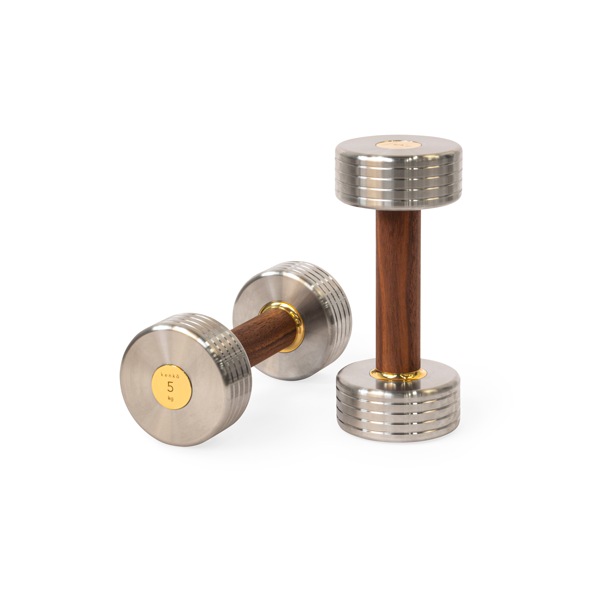 Berlin brand Kenko machines each dumbbell from solid stainless steel, slides on an FSC-certified American-walnut grip, then seals the set with gold-plated brass end caps. The result: a satin finish that won’t rust, a warm handle that won’t slip, and a silhouette you’ll be happy to leave out on a sideboard.