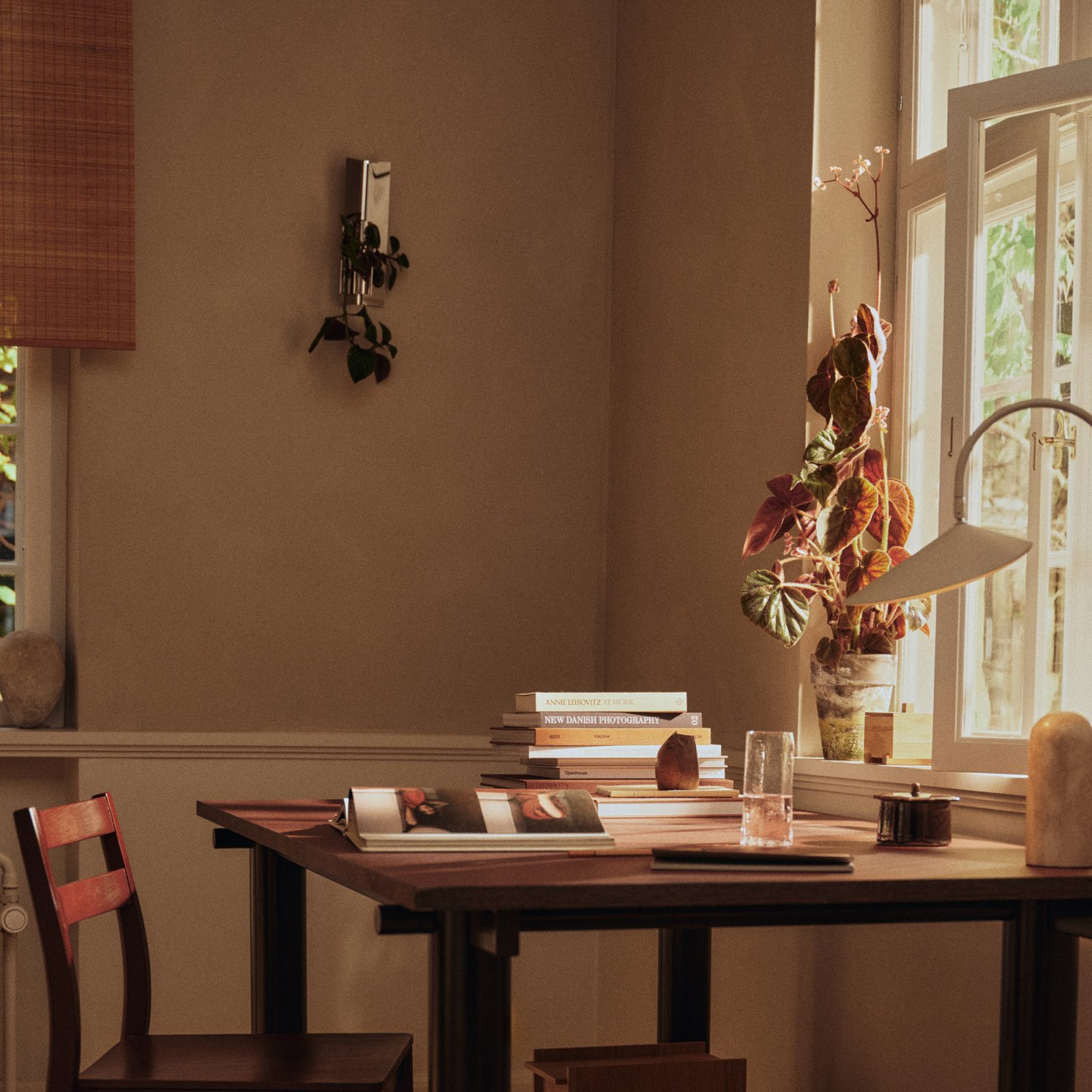 The vessel is sized for a few stems or a small bouquet. It also works empty, as a clean vertical accent that adds a bit of light and depth to a plain wall—hallway, bedside, kitchen corner, wherever you keep wishing something would happen.