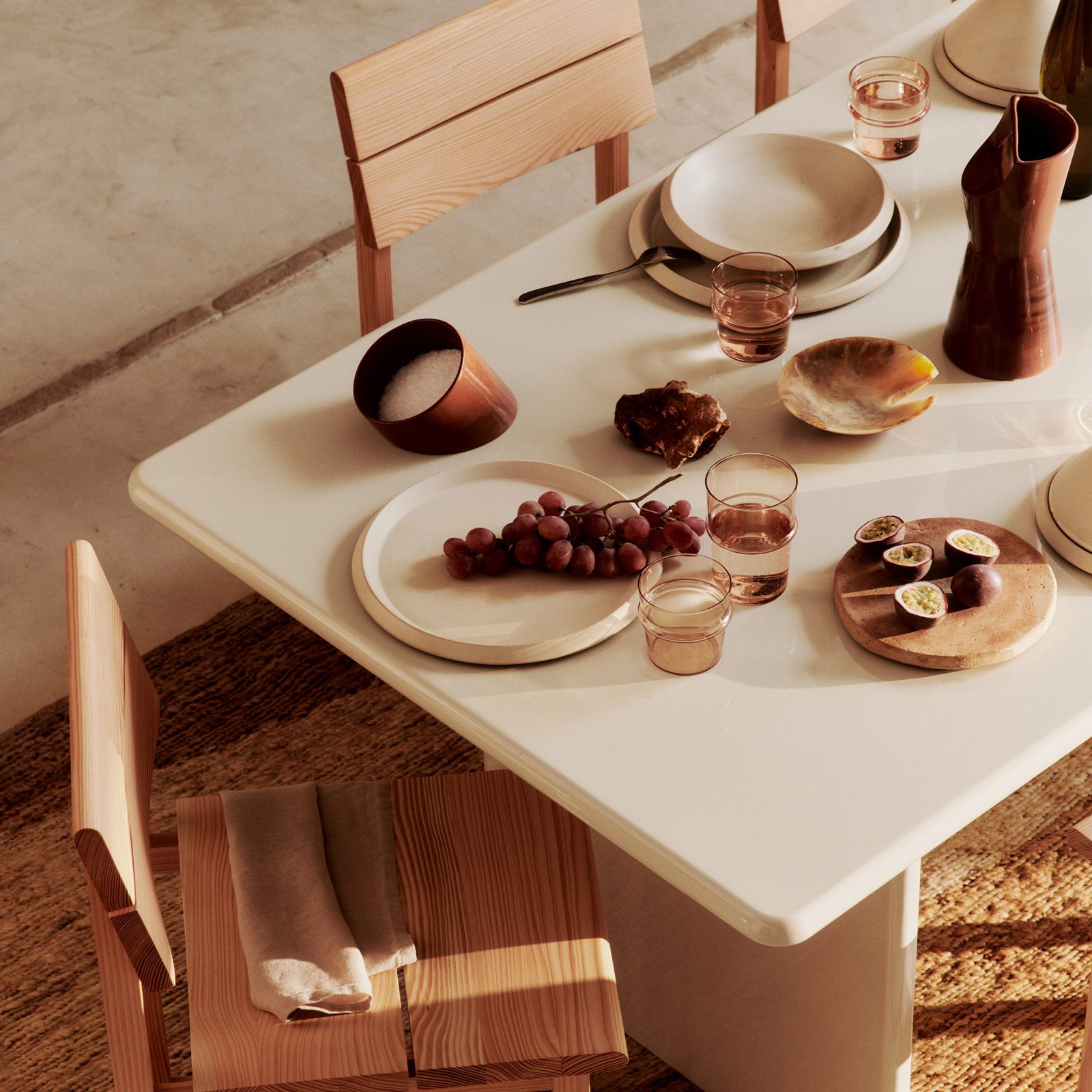 Make any meal special with the Erena Dinner Plate from Ferm Living’s Can Lis collection. Inspired by the Mallorcan home of Danish architect Jørn Utzon, the Erena series gives a nod to both Can Lis’ architectural elements and to Mediterranean heritage. The design features an angled edge that references traditional North African cooking vessels and well as the roof forms of Utzon’s coastal residence. Additionally, the use of stoneware celebrates Mallorcan culinary and crafting traditions. One-of-a-kind, each Erena Dinner Plate is made of tactile stoneware with a reactive finish that boasts a matte cream color. As a result, the plate looks both contemporary and subtly rustic, bringing warmth, texture, and elegant minimalism into your dining space. Ideal to use for everyday meals or special events, the Erena Dinner Plate can be styled on its own or paired with the side plate, serving platter, bowl, and serving bowl from the Can Lis series.