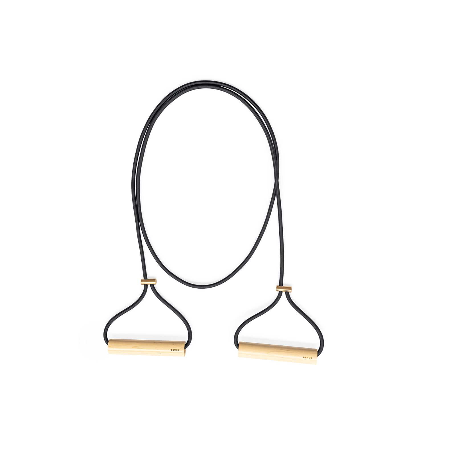 Pick your finish: light, satiny Canadian maple or rich American walnut, both capped with gold-plated brass that shrugs off sweat and oxidation. Cylindrical handles roll smoothly in your palms, while the latex resistance band snaps back to shape session after session. Set it on a shelf and it reads like a Bauhaus object — a quiet prompt to pick it up again.