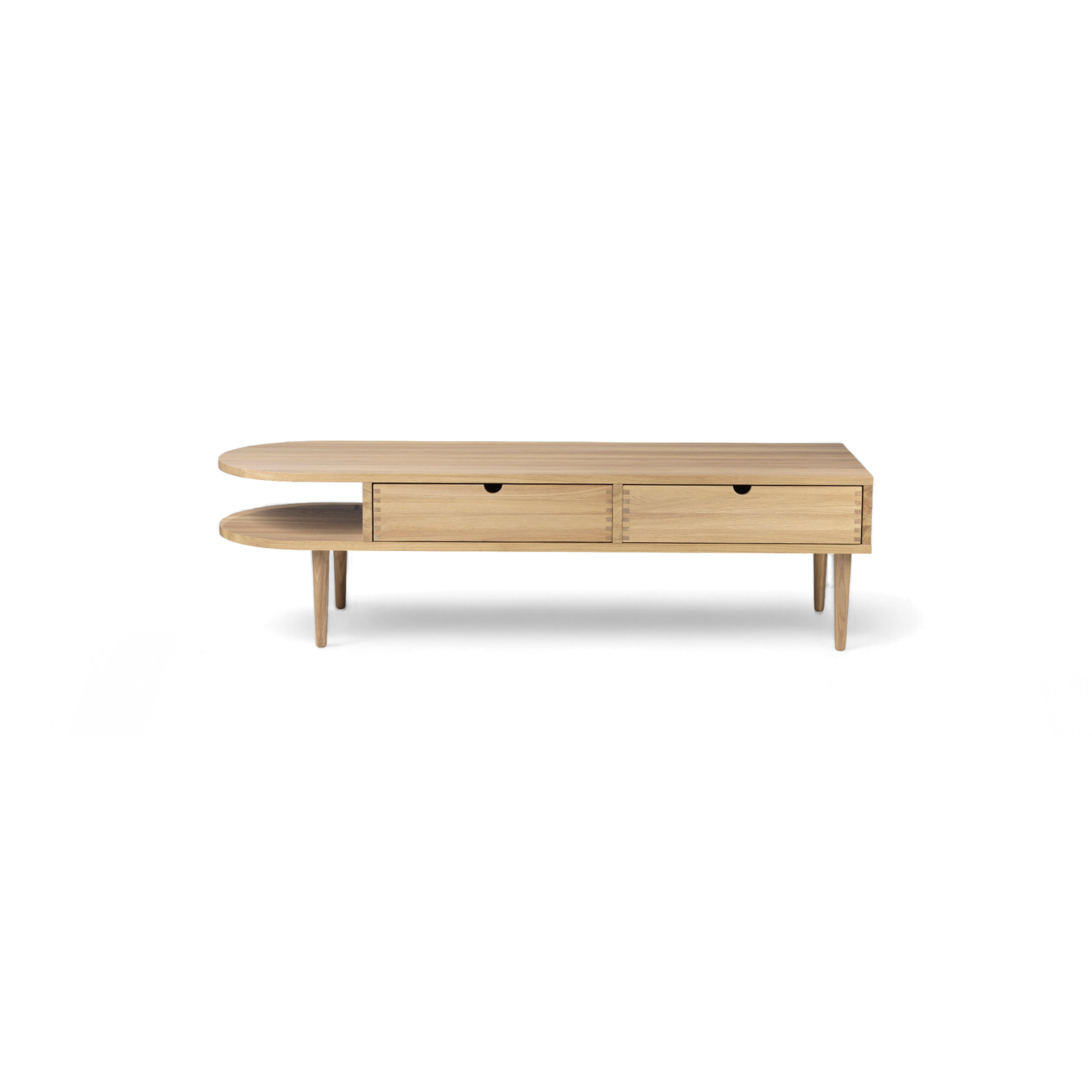 Designed by Mot & Bergstrøm, the F24 Bench reimagines the traditional storage bench for modern living. Built from solid oak, its clean lines, rounded corners, and slim drawer offer a minimalist yet welcoming presence. Whether placed in a hallway, a bedroom, or used as a compact coffee table in a smaller living space, the F24 adapts effortlessly to the needs of daily life. Available in two sizes, it offers a thoughtful balance of seating, surface, and hidden storage — practical without ever feeling heavy-handed. Natural variations in the oak give each piece a quiet individuality.