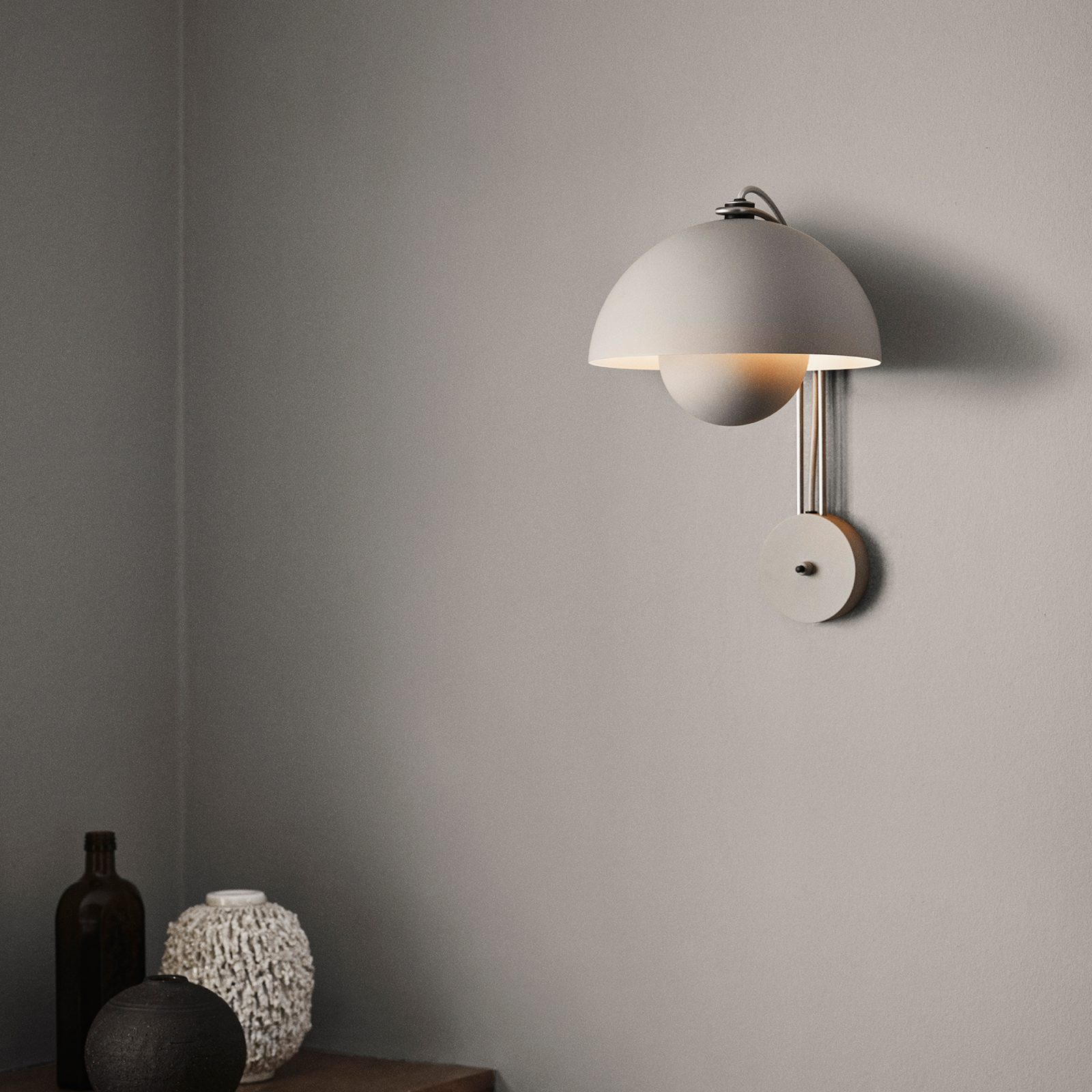 The Flowerpot Wall Sconce from &Tradition, a modern adaptation of Verner Panton’s 1960s pendant design, is engineered for wall mounting. This luminary maintains the clean, geometric lines of midcentury aesthetics, making it a practical choice for diverse interior decors. Its sleek design not only serves as functional lighting but also as a decorative element, suitable for enhancing hallways, reading areas, or bedside spaces. The sconce provides direct and ambient lighting, fitting seamlessly into both contemporary and traditional settings. Its straightforward assembly and durable materials ensure it integrates effortlessly into any room, adding both illumination and a touch of 1960s-inspired style.