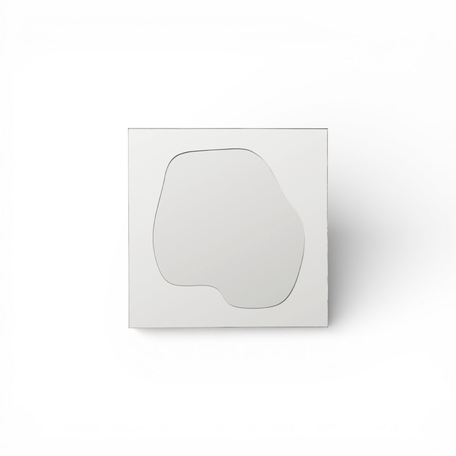 Folia takes a familiar rectangle and gives it a softer center of gravity. A clean outer frame holds an irregular mirror inlay—like a leaf shape traced in glass—outlined by a slim silver edge that catches light as you move through the room. It’s subtle in photos and surprisingly lively in person.