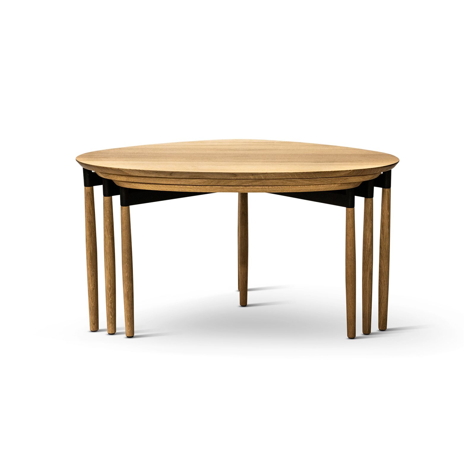 This nesting coffee tables set of 3 comes with a small, medium, and large table that can fit into even compact spaces with ease. Alternatively, you can spread out the tables to create sculptural and functional side tables to store and display items in a living room or lounge area. The Bent Hansen Forma nesting coffee table set is made from solid oak with an oiled finish that enhances the textures of the natural material.
