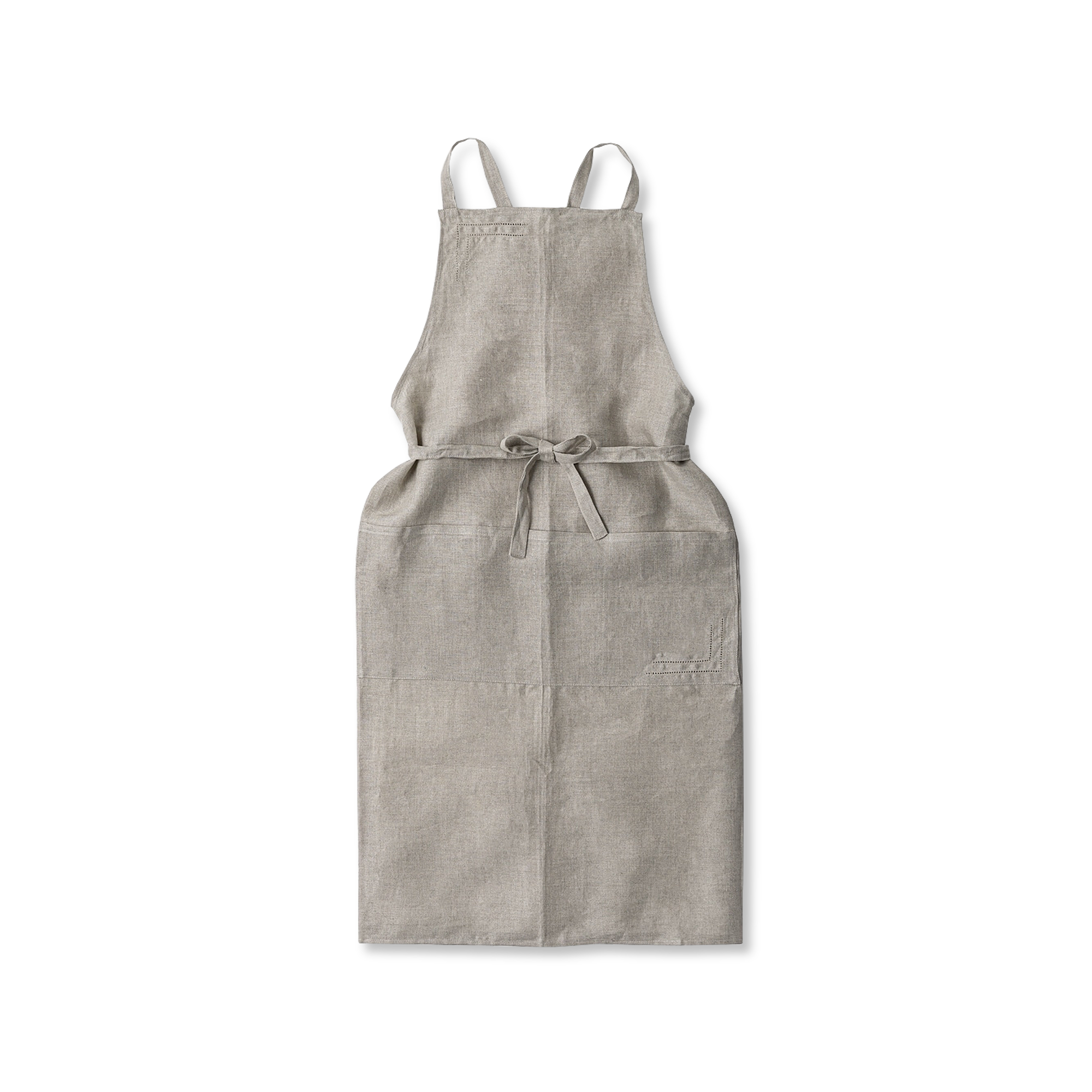 A Japanese linen apron designed for comfort and ease. Made from pre-washed European flax and produced in Lithuania, it has the soft texture and natural drape that linen lovers appreciate. The adjustable cross-back straps make it simple to wear, while the roomy front pockets keep essentials close at hand. The pale Flux tone adds a calm, neutral touch that works beautifully in the kitchen, garden, or studio. Thoughtful design from Tokyo, crafted to last through years of daily use.