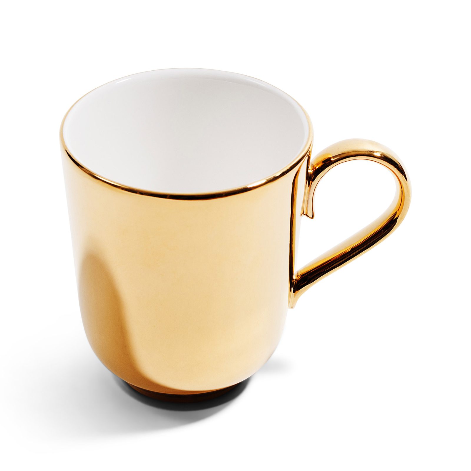 Behold the power of cutting-edge design: an espresso cup that looks like a piece of contemporary art. Made by designer Richard Brendon and pattern aficionados PATTERNITY, the Superstripe Gold Espresso Cup & Saucer elevates classic bone china to the level of masterpiece. The design pairs a traditional cobalt blue and white palette with a polished gold cup. Reflected on the polished surface, the pattern seems to move depending on the viewing angle. Inside the cup, a single blue square completes the multi-layered design. Perfect as a git, this espresso cup and saucer set is crafted by skilled artisans in Stoke-on-Trent, England. Other products from the same collection are also available, including teapots and plates.