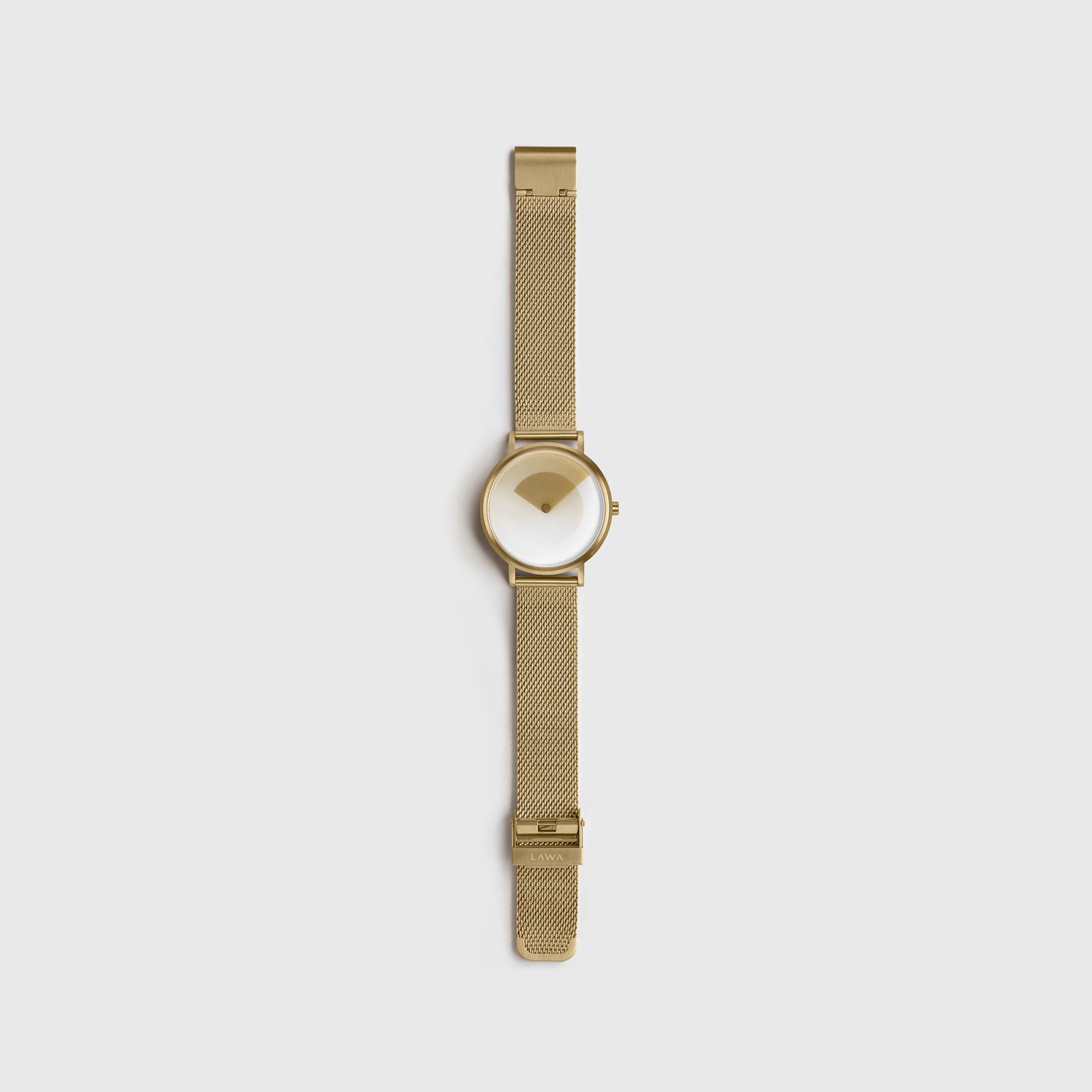 The Gold Gradient Watch catches the light the moment you move your wrist. A soft, brushed gold case frames a dial that never quite looks the same twice: two translucent discs—one for hours, one for minutes—slide over each other, so time shows up as overlapping shades instead of ticking hands. A full wedge of shadow at breakfast, a slim crescent by late evening.